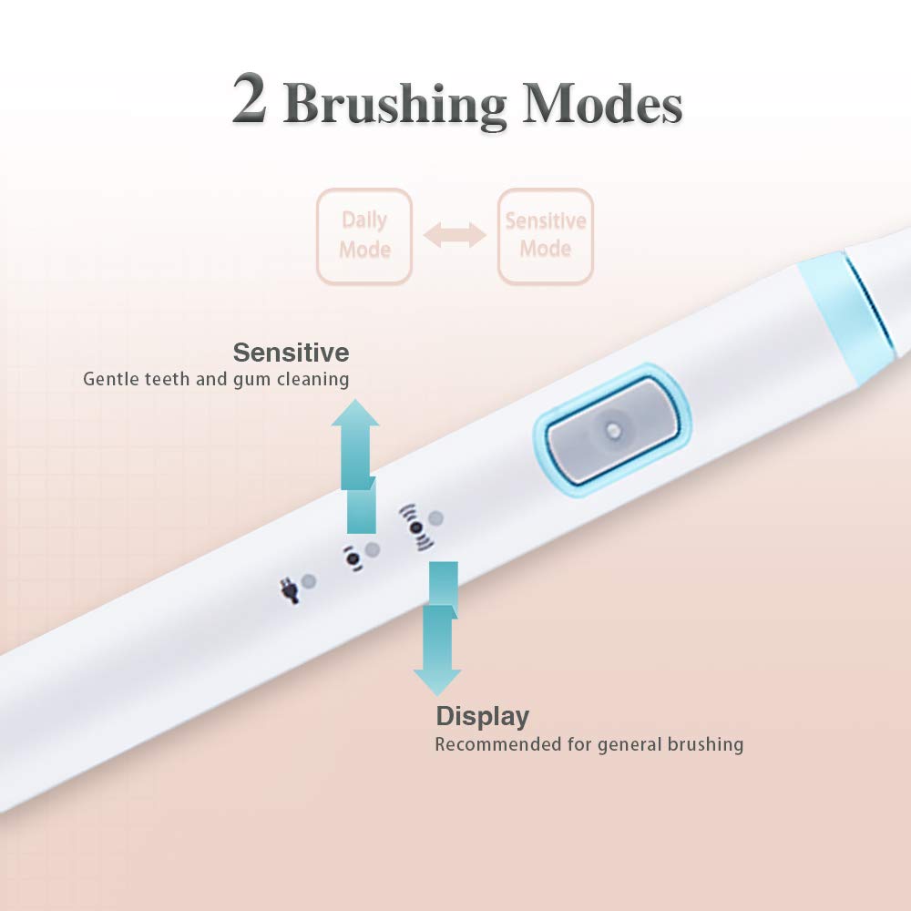 • ✅【2 Modes Rechargeable Electric Toothbrush】Waterproof ultrasonic toothbrush have 2 modes for you to choose. Including Daily and Sensitive modes suits different conditions of your teeth and gums. best gift for he/she, improves gum health in less than 2-weeks.