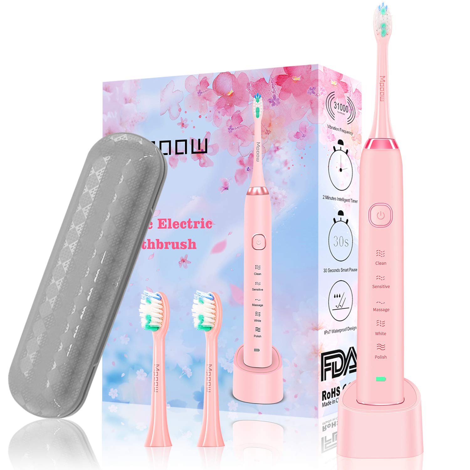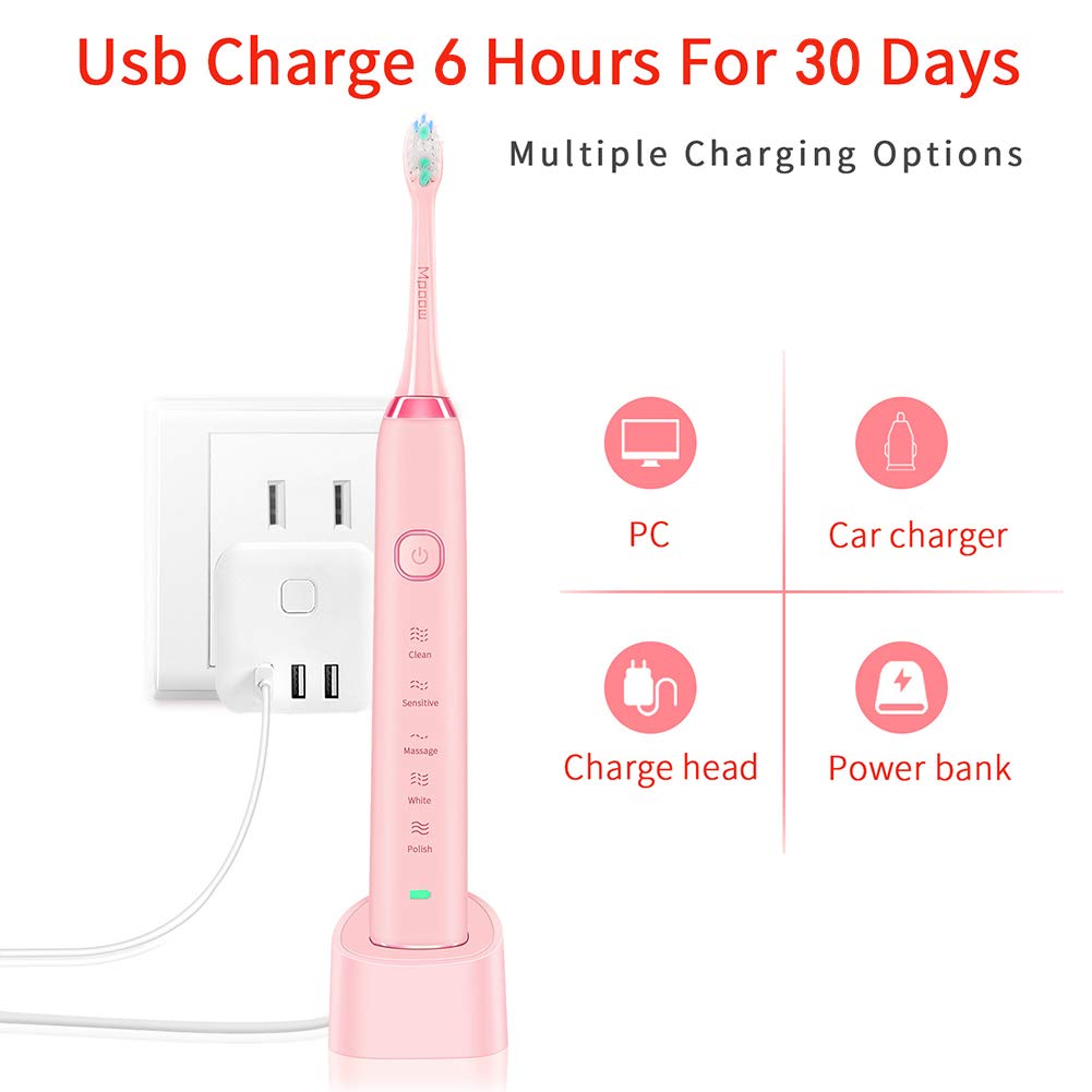 Sonic Electric Toothbrush With Travel Case, 6 Hours Charge Minimum 30 Days, Use 5 Optional Modes, Adapt To Any USB Interface For Wireless Charging, Unique Cherry Blossoms Pink