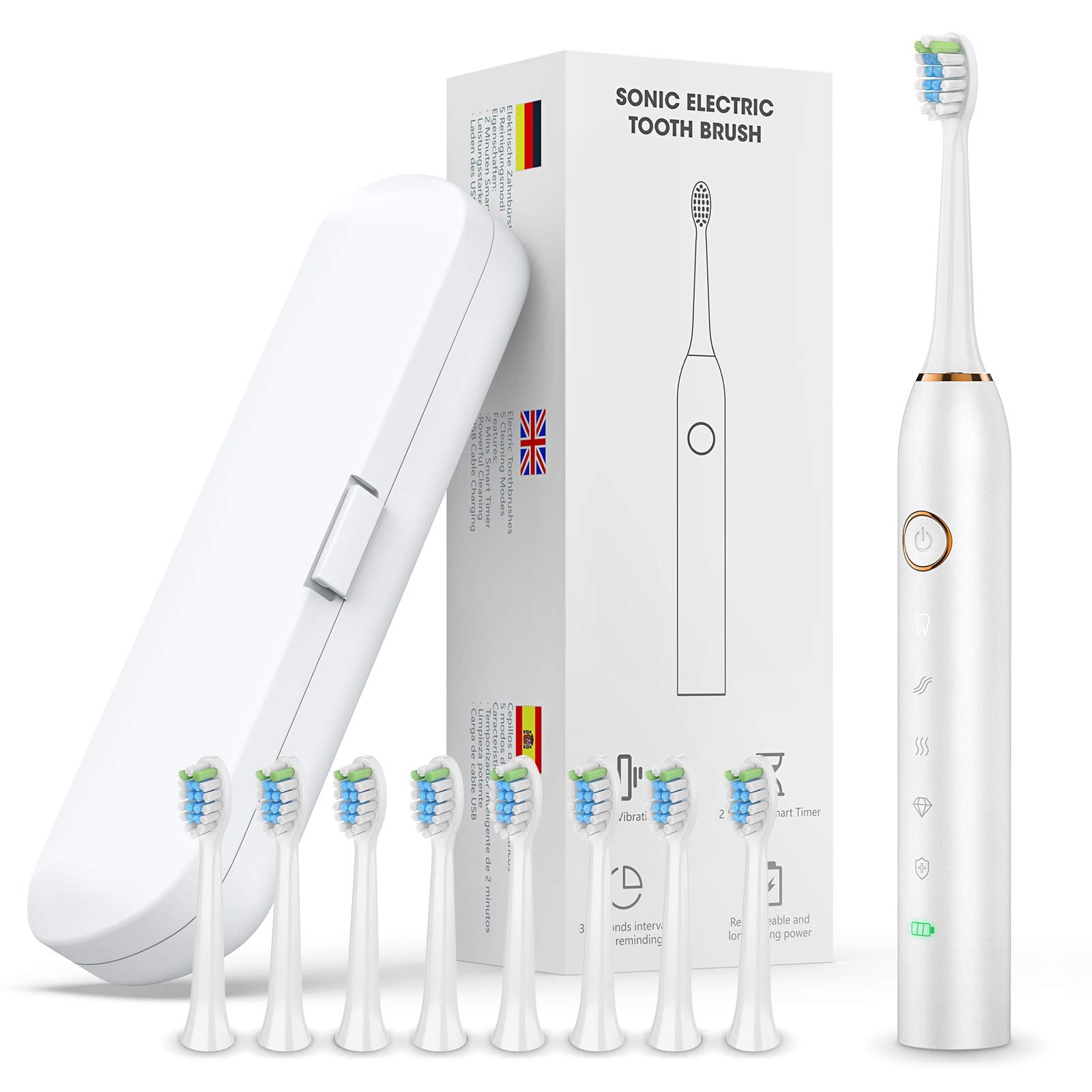 Sonic Toothbrush,Electric Toothbrushes for Adults, Rechargeable Whitening Toothbrush for 60 Day Use,8 Dupont Brush Heads,5 Modes , 2 Minutes Smart Timer ,Waterproof Powerful Electric Toothbrushes