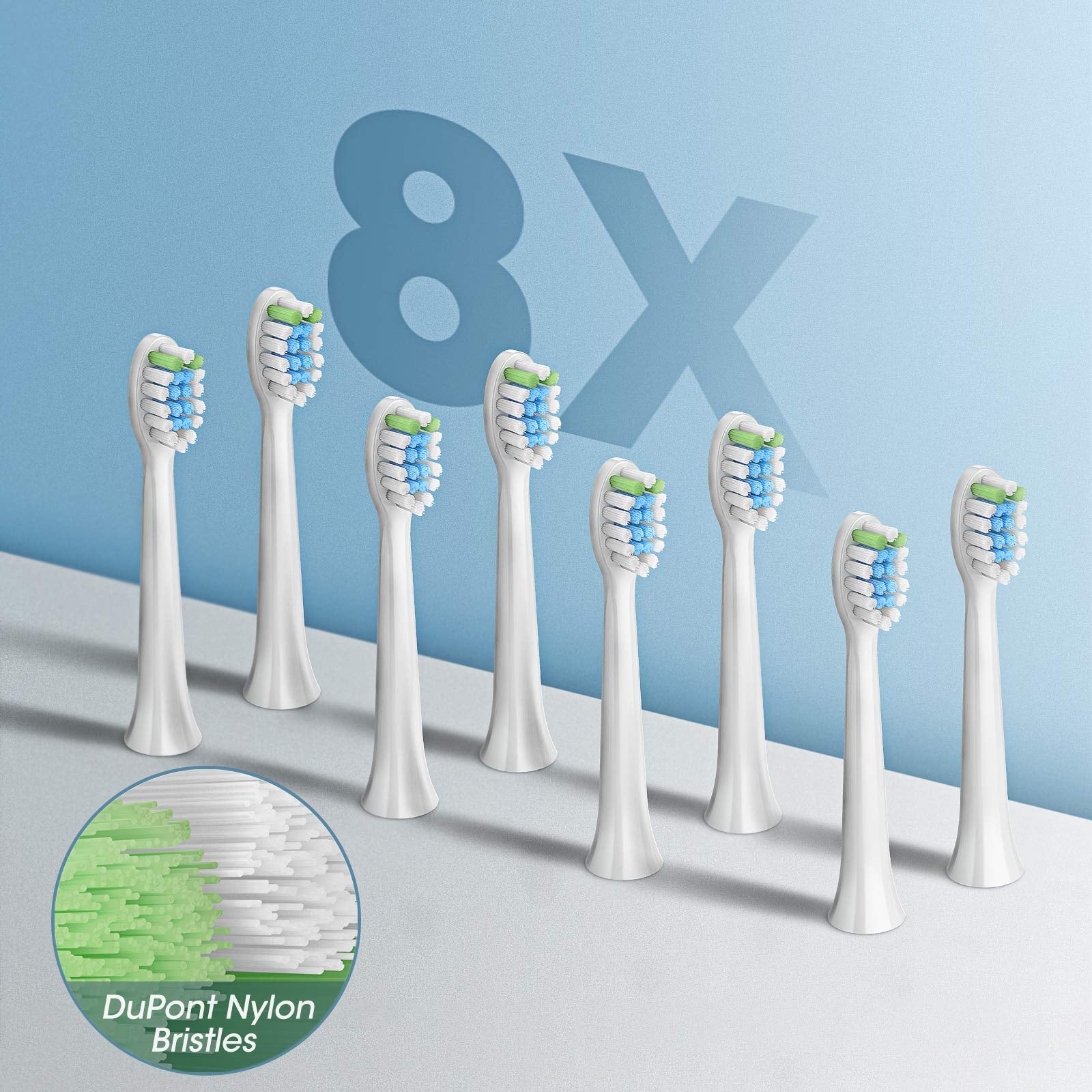 - 【8 DUPONT BRUSH HEADS &FREE TRAVEL BOX】:Our electric toothbrush comes with 8 replacement brush heads, it will be use more than 2 years for 8 brush heads in total.The bristles are made with DUPONT nylon, "W" shape design to suit teeth topography for thorough cleaning of gums and hard to reach areas.The toothbrush heads adopt ultra Quiet design has lower noise than the regular toothbrush,the new vibration technology does not hurt the gums.