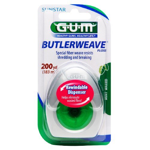 Sunstar Gum Butlerweave Waxed Dental Floss Mint Flavor 200 Yd (Pack of 4)