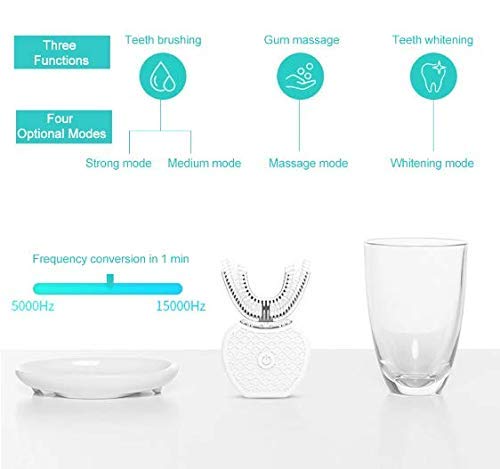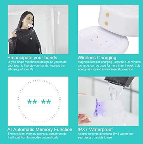U-SHAPED DESIGN: The U-shaped snap fit is designed to fit the mouth and clean the surface and internal orientation of the teeth. Made from food-grade antibacterial silicone, it is highly water-repellent, washable and reusable electric toothbrush. STRONG TOOTHBRUSH: Strong mode for powerful teeth brushing, Medium mode for comfortable teeth brushing,...