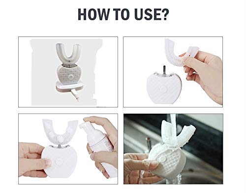 * After full charge, install U-shaped brush head. * Shake the liquid toothpaste, then press out the foam and evenly apply it to the U-shaped brush head. * Put the brush head into your mouth, relax your bite on the U-shaped brush head, and select the right frequency mode. * Easily brush your teeth, and move your brush back and forth, left to right with your hands at the same time, brushes your teeth for a deeper clean. * After brushing your teeth, use wet cloth to clean up the water and stagnation of the fuselage.