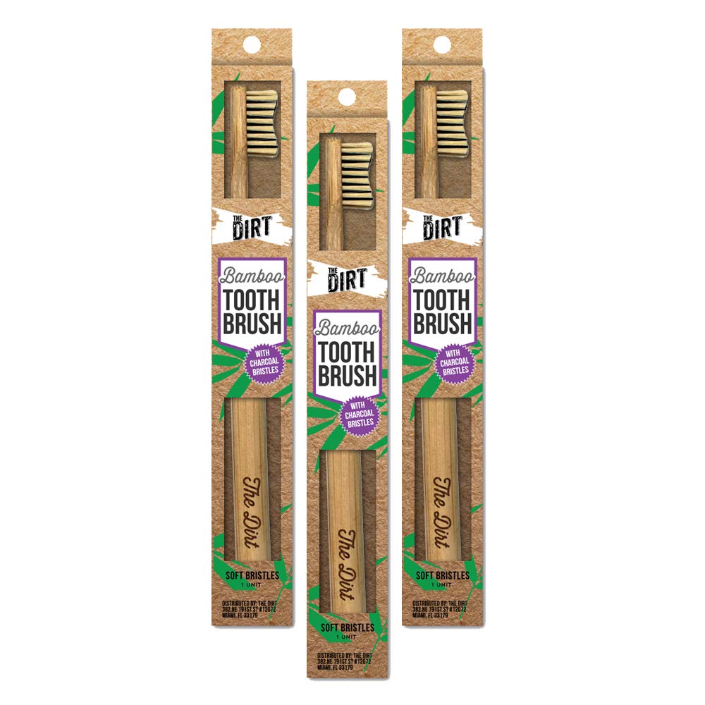 The Dirt All Natural Charcoal Infused Bamboo Toothbrush - Dental Brush with Soft Bristles and Ergonomic Handle - 3Pack