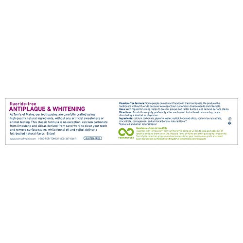 - WHAT YOU'LL GET: Two 5.5-ounce tubes of Tom's of Maine Natural Fluoride-Free Antiplaque and Whitening Toothpaste in Fennel Flavor
