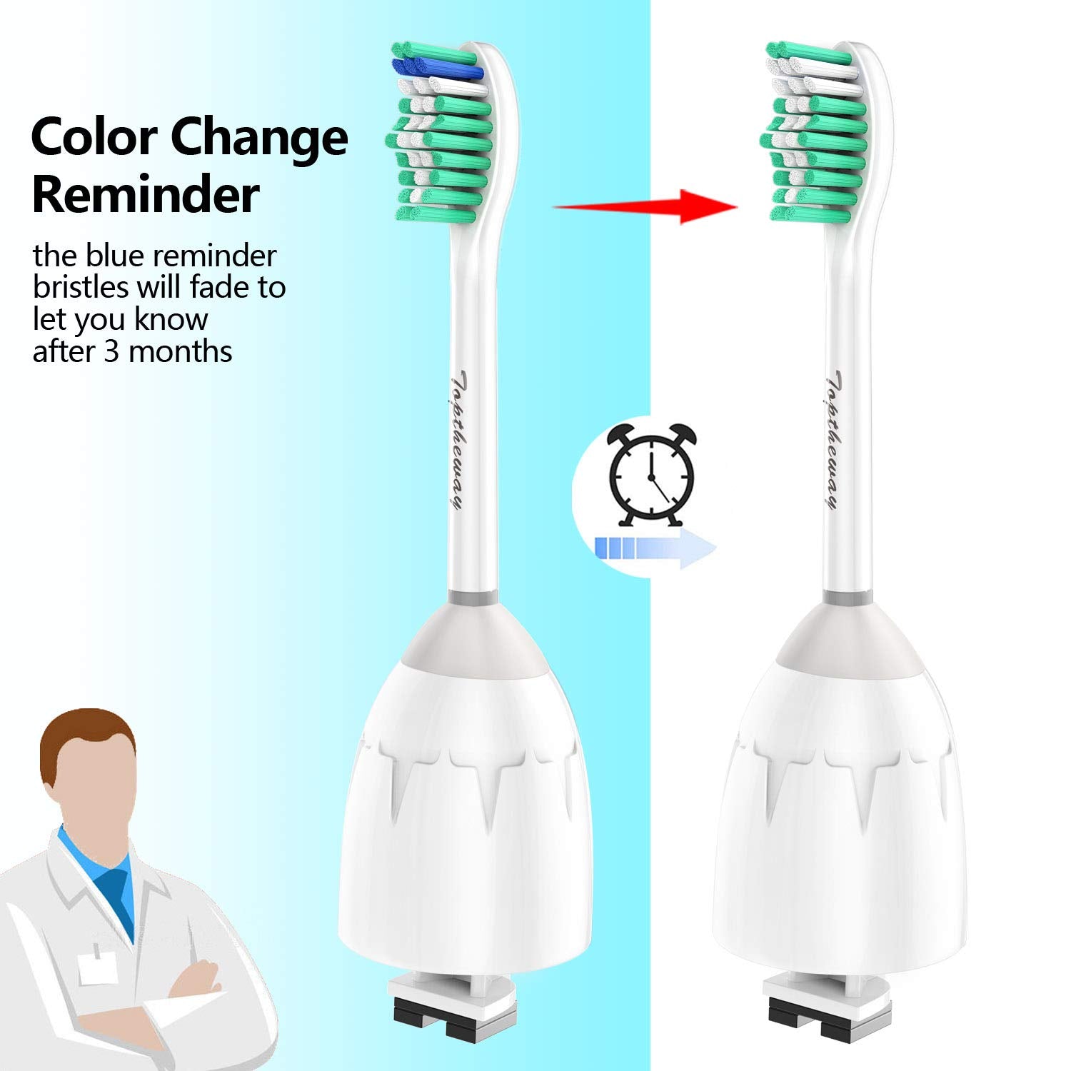 - Medical Grade Bristles- Toptheway toothbrush heads are made with US rounded end medical grade Nylon Bristles. Gentle on your gum and blue indicator bristles fade in color to let you know when it's time to replace the brush head.