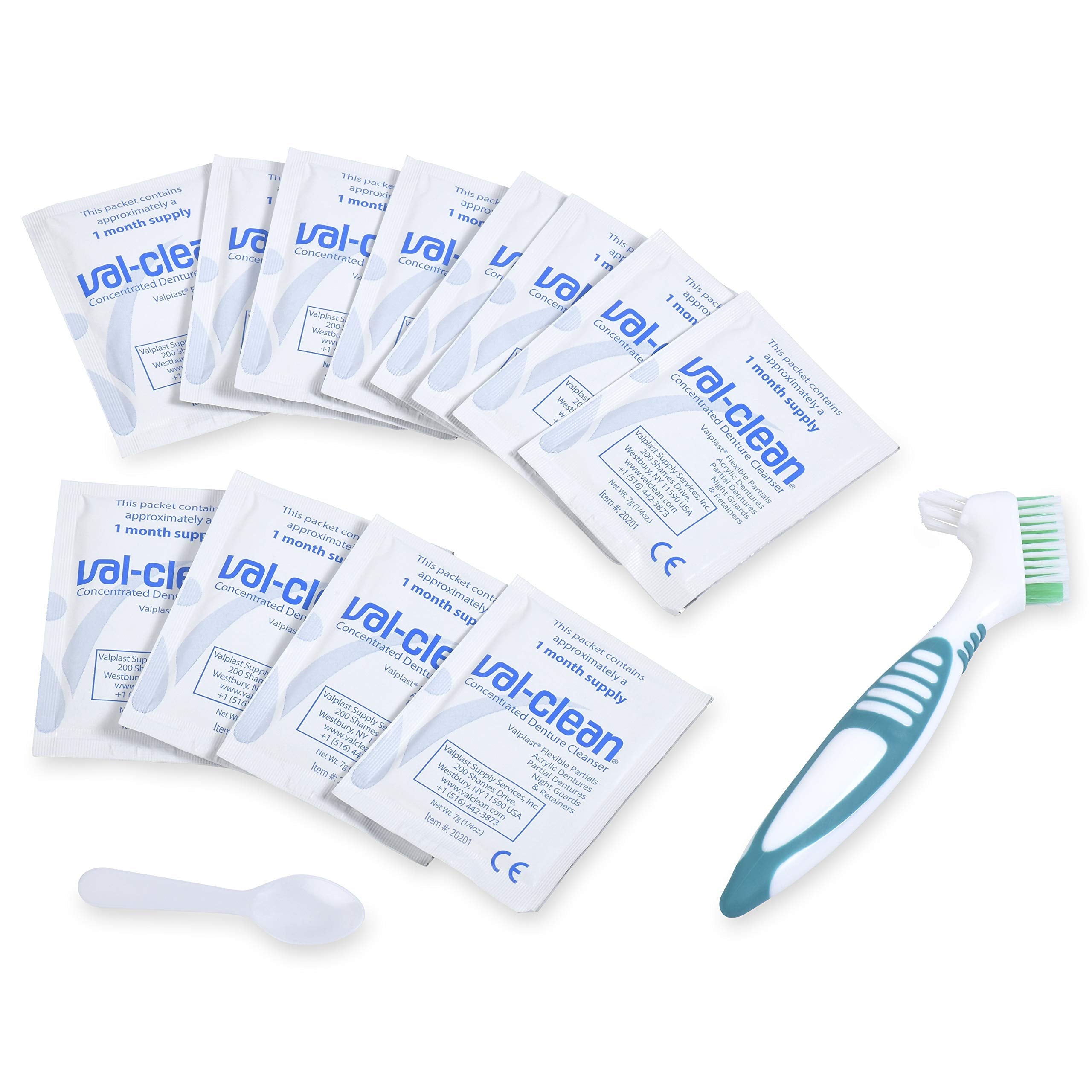 • Val-Clean Concentrated Denture Cleaner will safely, quickly and effectively maintain cleanliness of your removable dental appliance. 1 year supply. Handy reference card with detailed denture care instructions