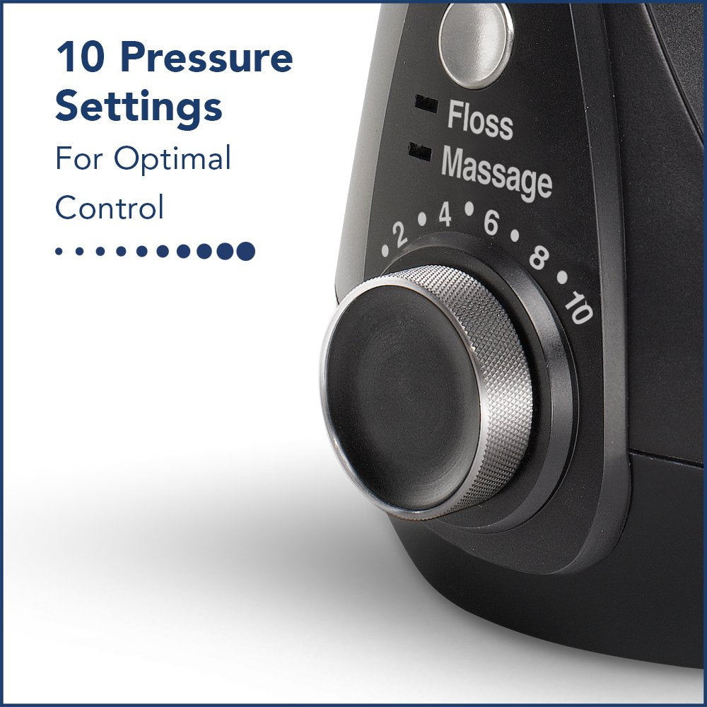 • 10 Pressure Settings, 90 Seconds of Water Capacity, 7 Water Flossing Tips, and a Tip Storage Case