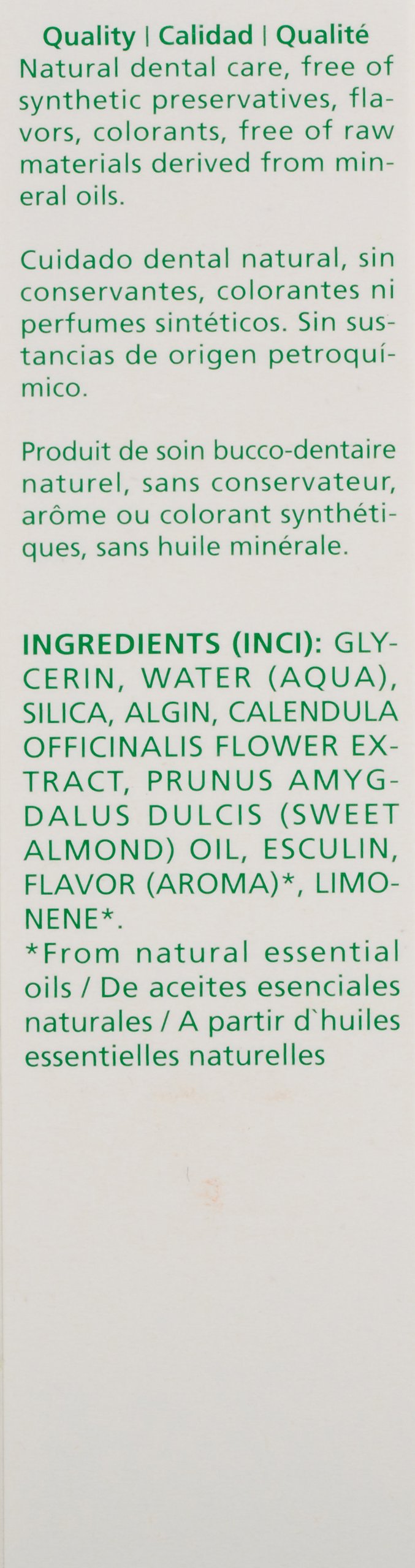 Newly forming teeth and gums get soothing care from this tooth gel. it’s a gently effective gel specifically formulated to give the kindest treatment to your little one’s pearly white baby teeth. natural silica gently cleanses while the soothing properties of biodynamic® and organic calendula flower extract pacify tender gums. developed in cooperation with european dentists, this fluoride-free formula thoroughly cleans your child’s entire mouth and is safe to swallow. the mild flavors of spearmint and organic fennel help encourage your child’s good dental hygiene to last a lifetime. clean, white baby teeth, naturally soothed gums and fresh, minty breath—that’s something for both of you to smile about.