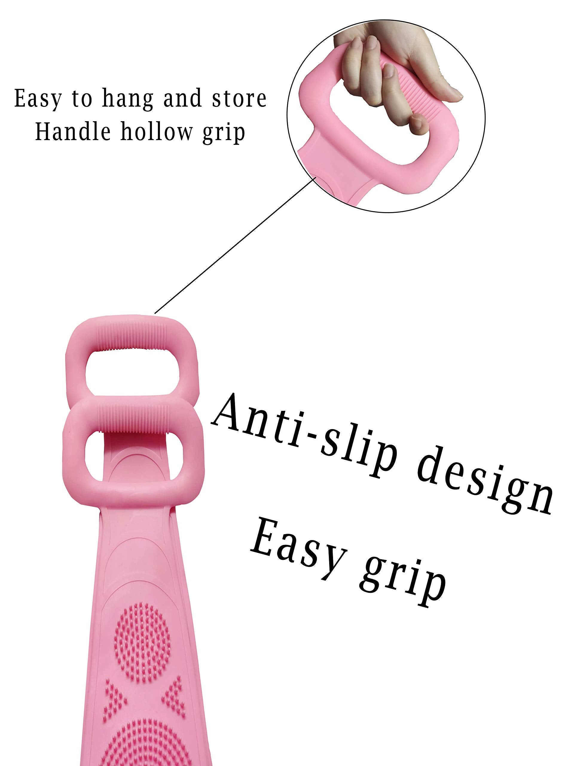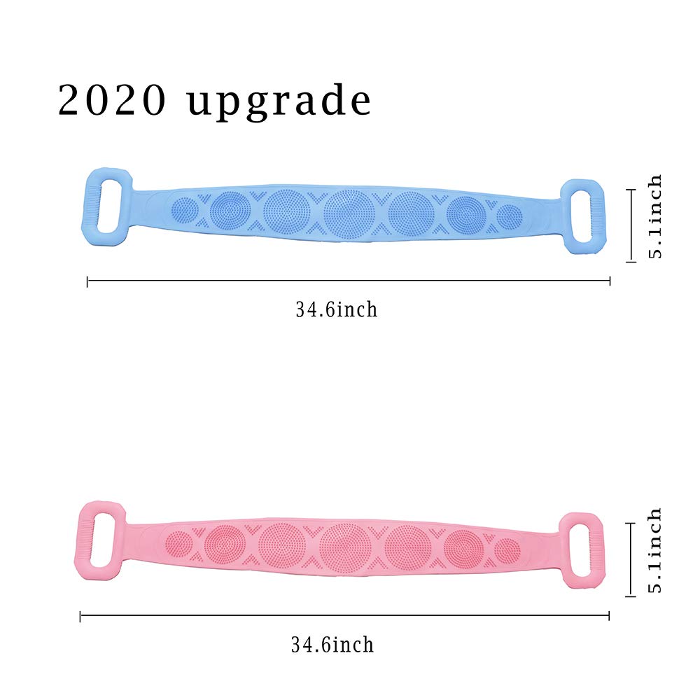 2Pcs Back Scrubber for Shower-Extra Long 34inch Dual Sided Exfoliating Silicone Body Scrubber with Soft Brush and Massage Dots for Deep Clean & Invigorate Your Skin(Blue and Pink)