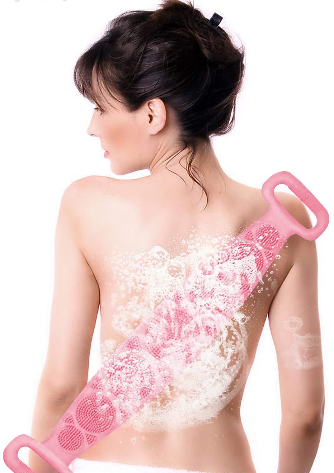 According to our research on the silicone body scrubber and the feedback from buyers, we have made a new upgrade-- 34.6 inch. Compared with other silicone scrubbers, you will find that our back scrubber for shower is longer and more Wide and suitable for people of all ages. The back scrubber is made of high- quality silicone without any other odor, which can better protect your skin. You can enjoy the massage comfort brought by the silicone back brush while bathing.