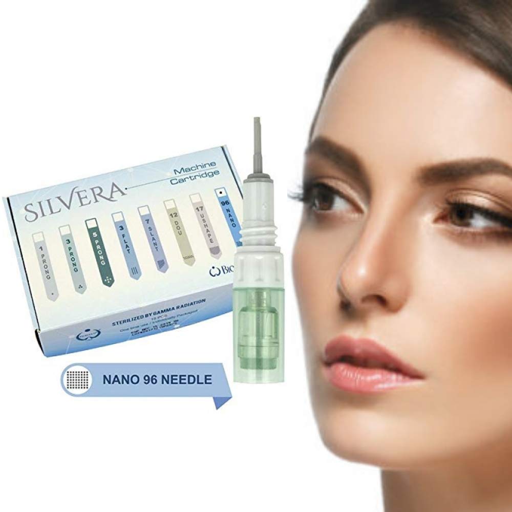 BIOTOUCH SILVERA Permanent Makeup Cosmetic Tattoo 96 PRONG NANO Sterilized DISPOSABLE Needle Cartridges Ombre Feathering Hair Stroke Technique Eyebrow Shading Microblading Supplies Micropigmentation