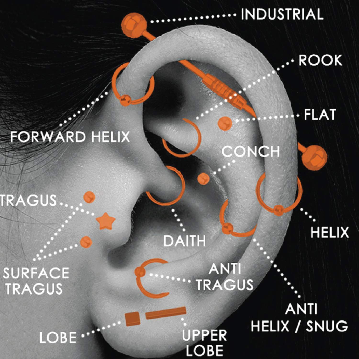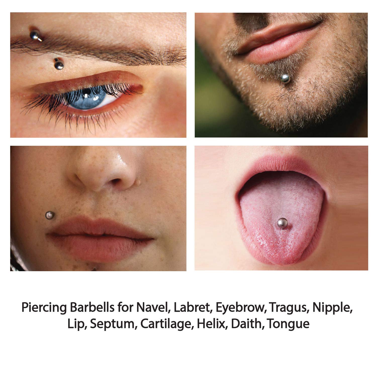 - VALUE PACK: 36 Pieces Professional Kit Includes Everything You Need for Body Piercing (Navel, Labret, Eyebrow, Tragus, Nipple, Lip, Septum, Cartilage, Helix, Daith, Tongue) and 1 Bottle (1.5oz) of 100% Pure Saline Wash.