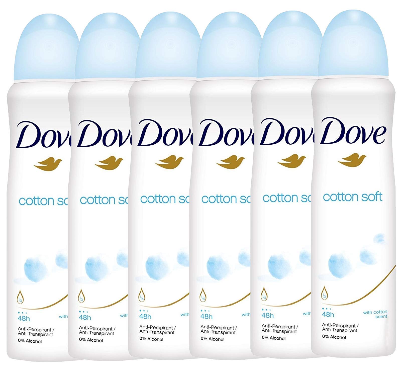Dove Antiperspirant 48 Hours Body Spray, Cotton Soft Deodorant, 6 Packs x 150 ML / 5 Fl.Oz (International Version)
