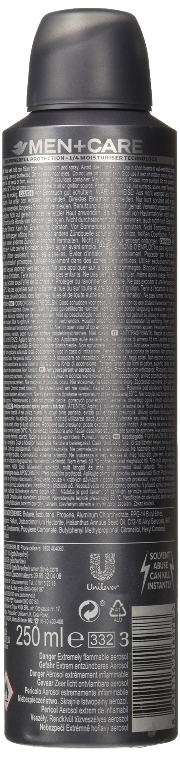 Size:Pack of 10 Keep sweat under control with Dove Men+Care Extra Fresh Dry Spray. This men's dry spray antiperspirant deodorant goes on instantly dry to keep you fresh all day. It instantly dries on contact with skin so you can get dressed right away and save time in the morning. The best antiperspirant deodorant for men protects skin without causing irritation. Dove Men+Care Extra Fresh Dry Spray is formulated with moisturizer technology to help protect skin against irritation. Clinically proven to combat sweat and odor for 48 hours, its refreshing, invigorating scent leaves skin refreshed. With Dove Men+Care Extra Fresh Dry Spray, you get powerful sweat protection that goes on instantly dry and won't leave any visible residue. For up to 48 hours of antiperspirant protection, give the can a shake. Hold it upright, six inches away from your underarm, and apply two or three sharp bursts to each. Next time you need a simple antiperspirant deodorant that won't slow you down in the morning, grab Dove Men+Care Extra Fresh Antiperspirant Deodorant Dry Spray. With Dove Men+Care Cool Fresh Dry Spray, you get powerful sweat protection that goes on instantly dry and won't leave any visible residue.