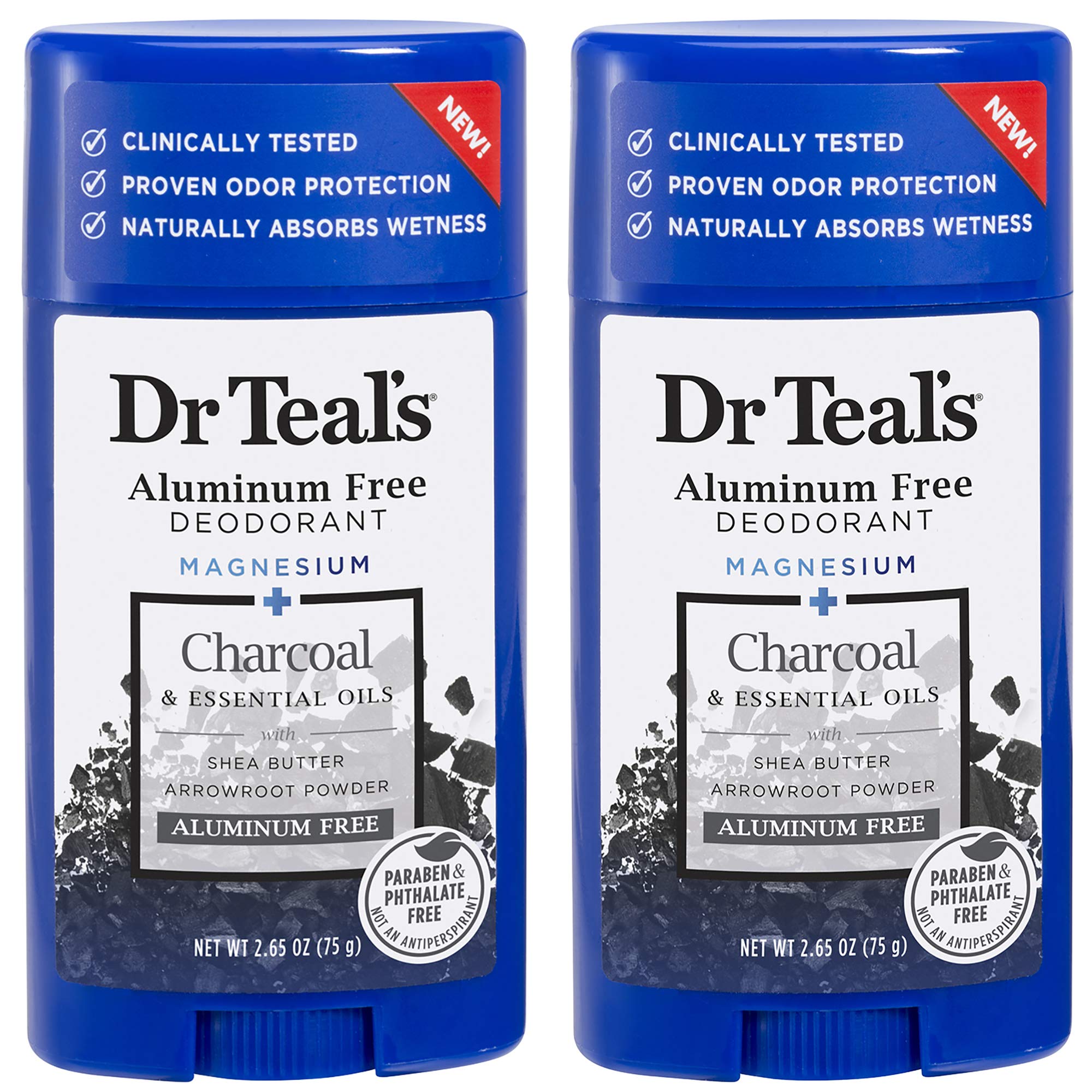 Dr Teal's Aluminum Free Deodorant - Charcoal - Paraben & Phthalate Free - 2.65 oz Pack of 2