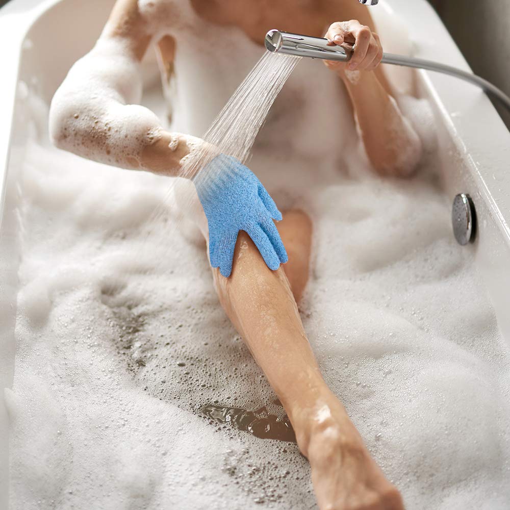 - Body wash gloves: the body wash gloves will bring gently pressure on your shin like massage, suitable for arms, legs, chest, back cleaning, to avoid unnecessary hurt, please do not clean face by the exfoliating gloves