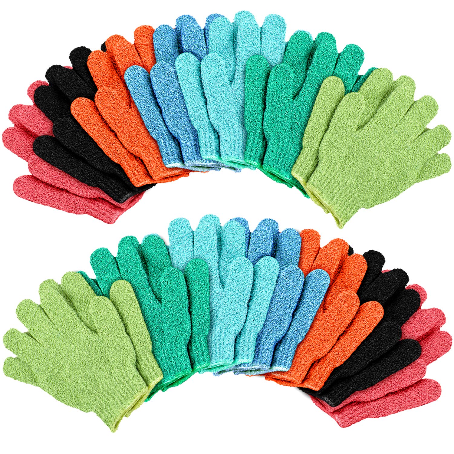 - Package include: come with 14 pairs exfoliating gloves in 7 colors, red, black, orange, turquoise, aqua, green and olive green exfoliator gloves are available, 2 pairs for each color