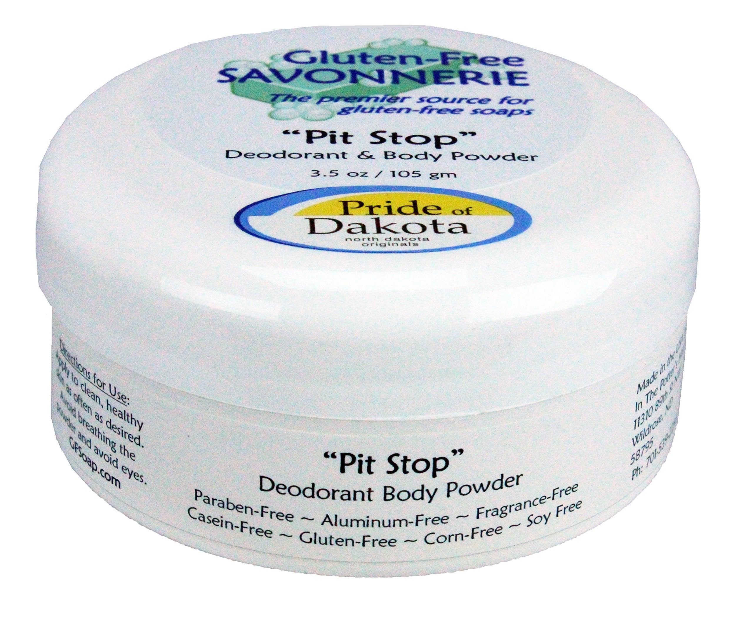 Gluten-Free Savonnerie Pit Stop Deodorant and Body Powder 3.5 oz tub with Puff