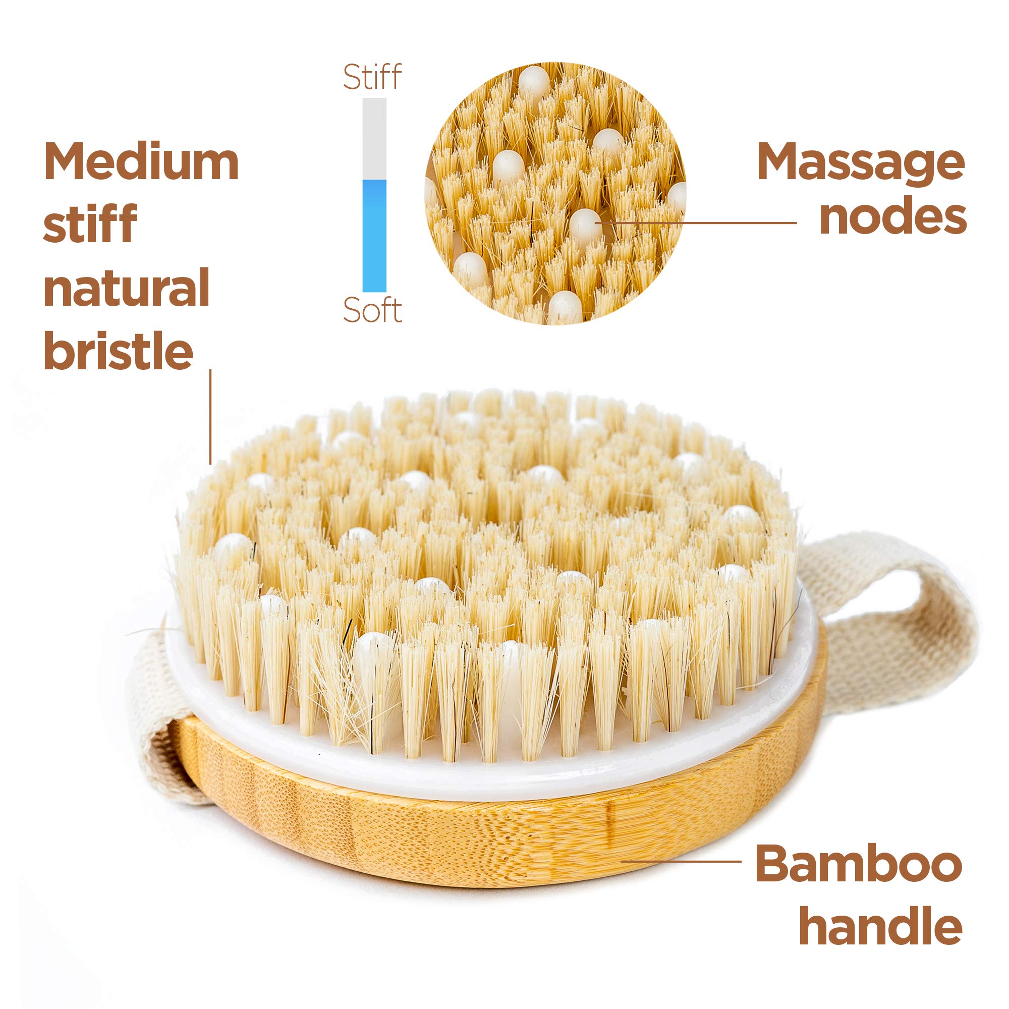\- Good for both dry or wet brushing and gentle exfoliating \- Premium quality brushes are built to last \- Improves circulation and helps in detoxification \- Designed for comfort and convenience