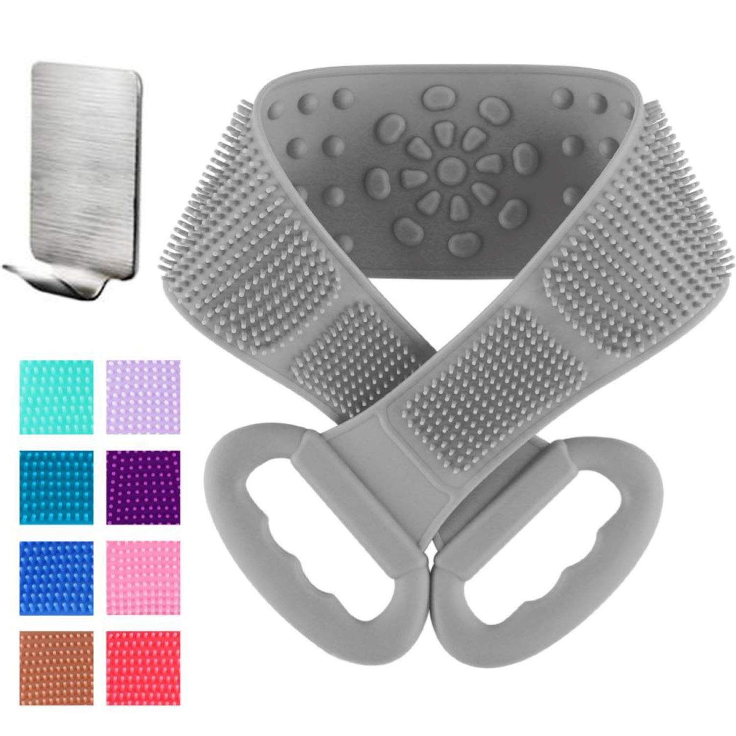 HOPESO Silicone Back Scrubber for Shower, Silicone Bath Body Brush, Easy to Clean - Exfoliating Improve Your Circulation, Includes Stainless Steel Hook (31.5inch, Brown gray) by HOPESO Store