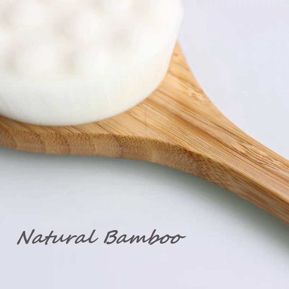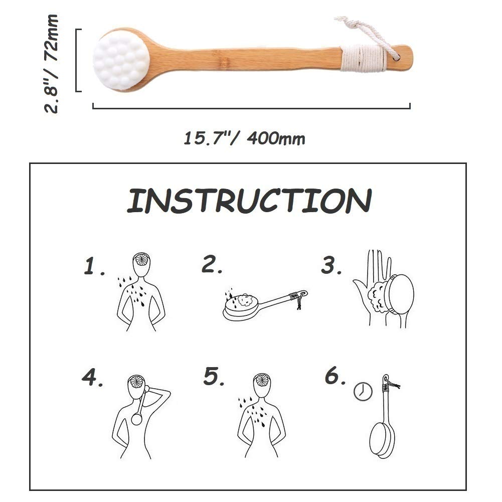 - LONG HANDLE DESIGN- A durable natural bamboo handle is over 15.7” (400mm) long. It is long enough to clean up any body areas. The handle is wrapped with cotton rope to increase the grip performance. The hanging string at the end of handle for convenient hanging storage.