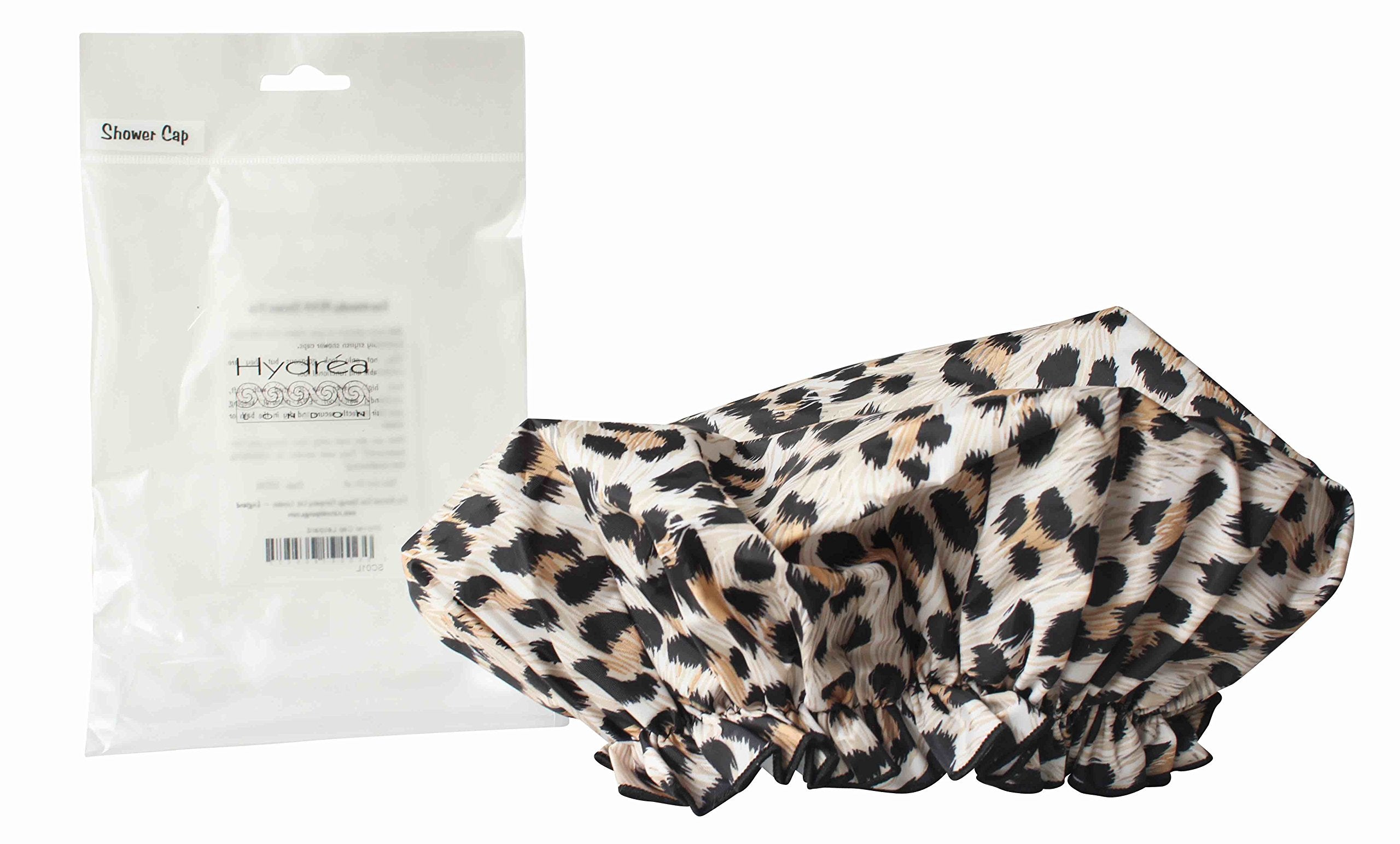 Hydrea London Eco-Friendly PEVA Shower Cap SC01L Leopard Print Design