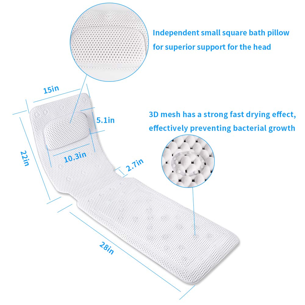 KR Bath Pillow Full Body,Non-Slip Cushioned Bathtub Pillow,Luxury 3D Air Mesh Spa Bathtub Cushion for Neck Head Shoulder and Back Support,Quick Drying Machine Wash Safe