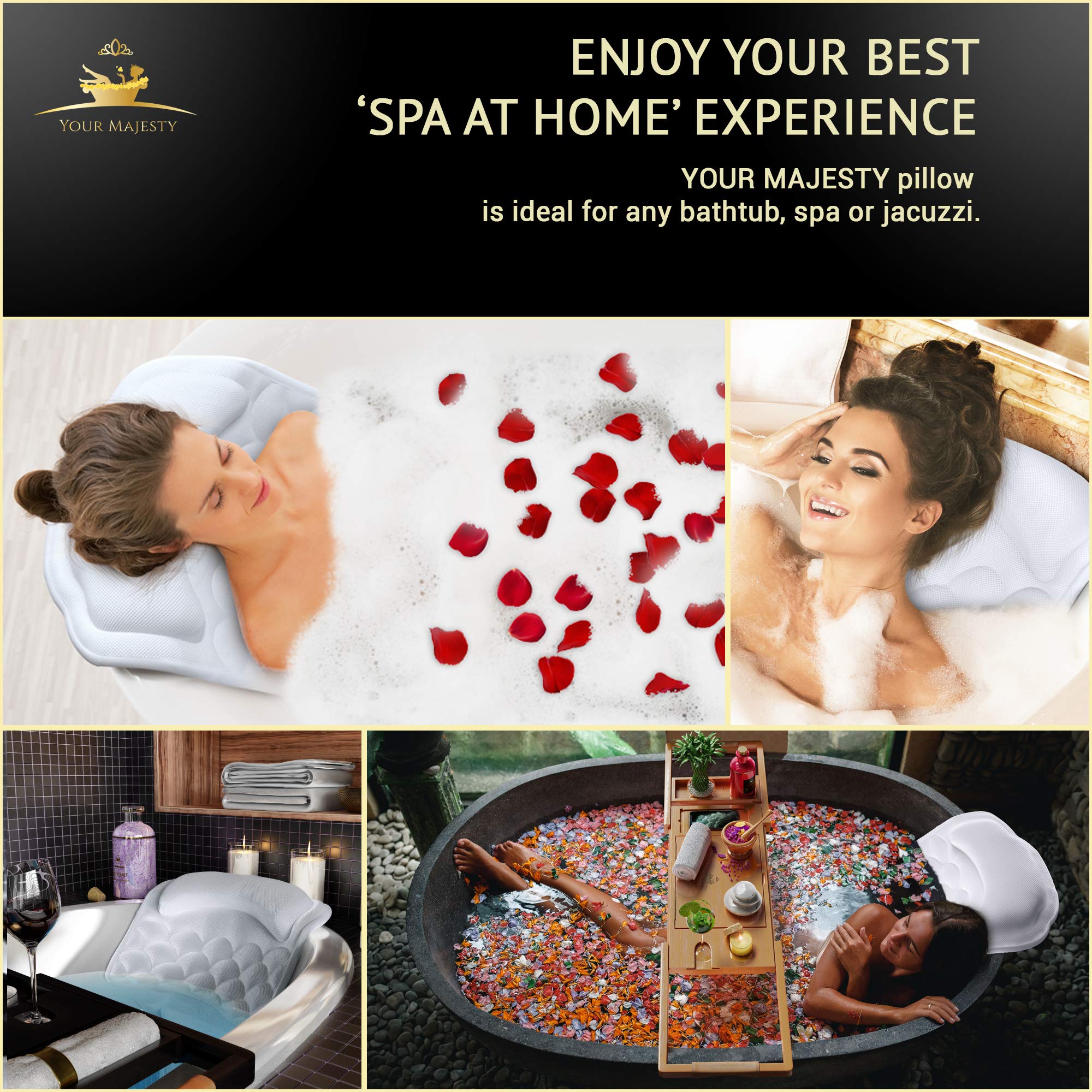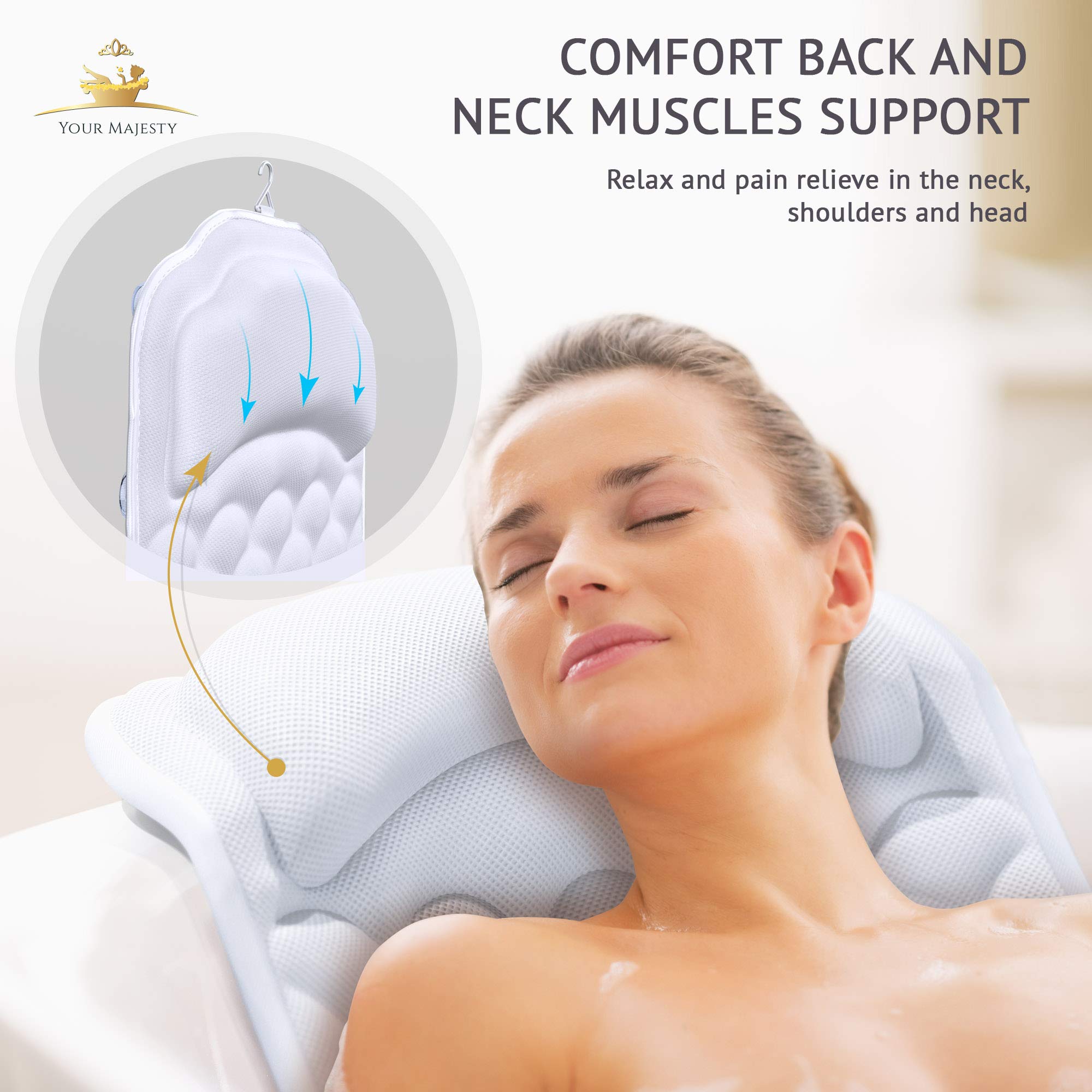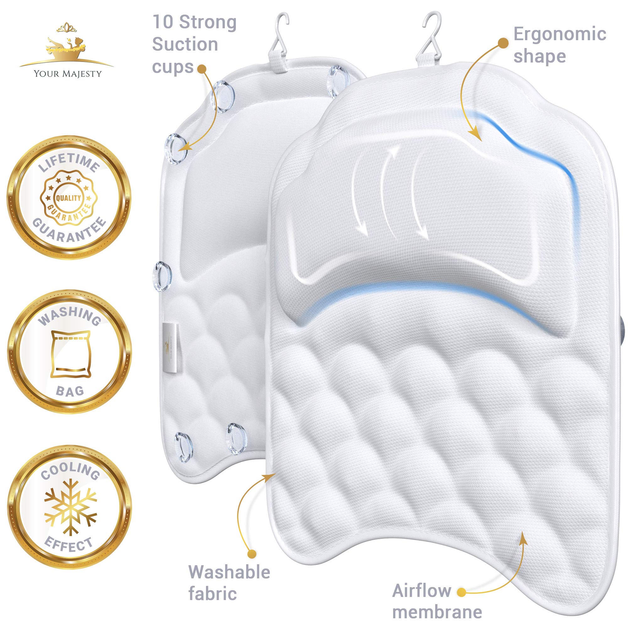 Premium Bathtub Pillow, Soft And Durable [10 Anti-Slip Suction Cups] Extra Cushioned Design Cradle Neck, Head And Shoulders Support, Bath Dry Fabric Provides Cooling Effect | With Machine Washable Bag by Your Majesty Store