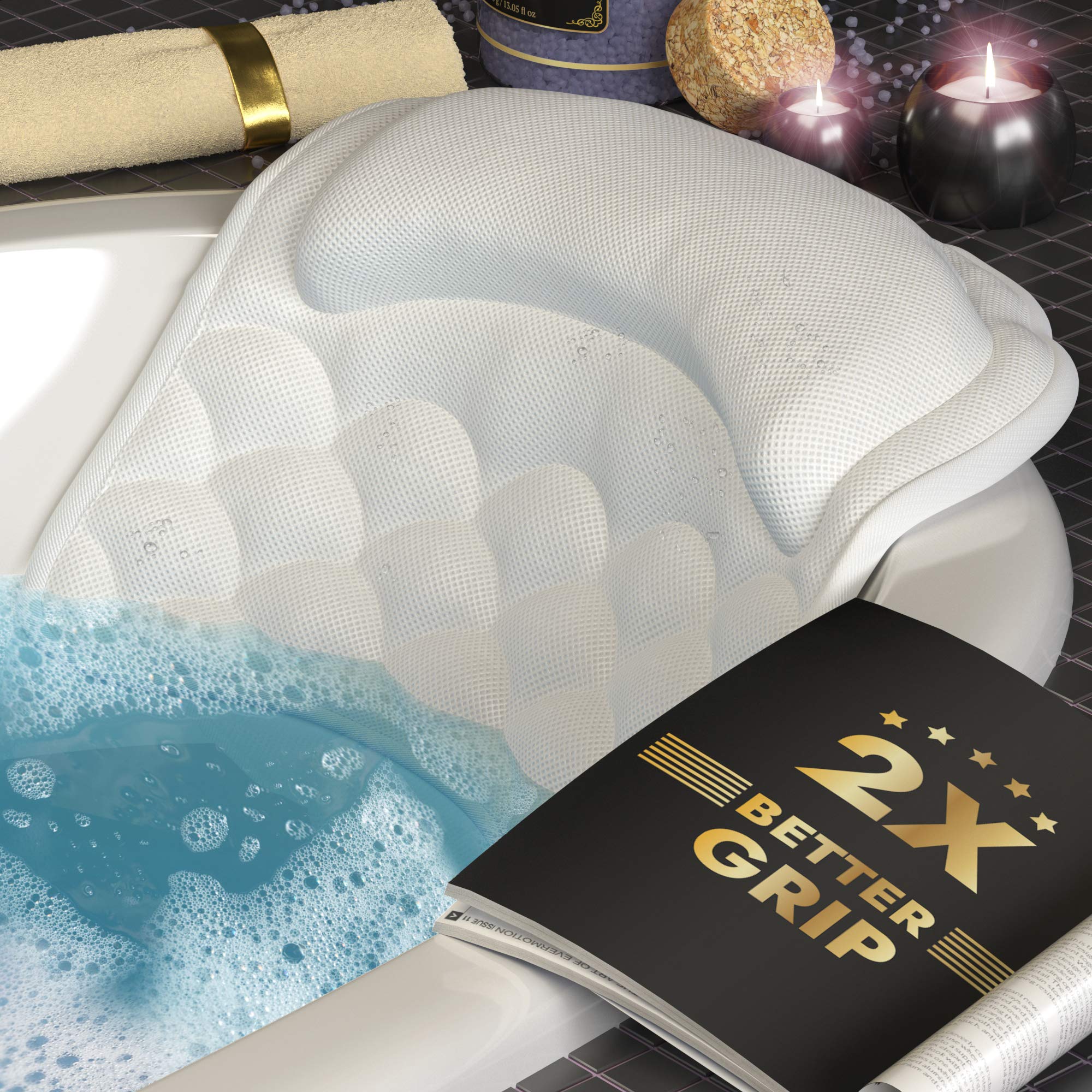 Premium Bathtub Pillow, Soft And Durable [10 Anti-Slip Suction Cups] Extra Cushioned Design Cradle Neck, Head And Shoulders Support, Bath Dry Fabric Provides Cooling Effect