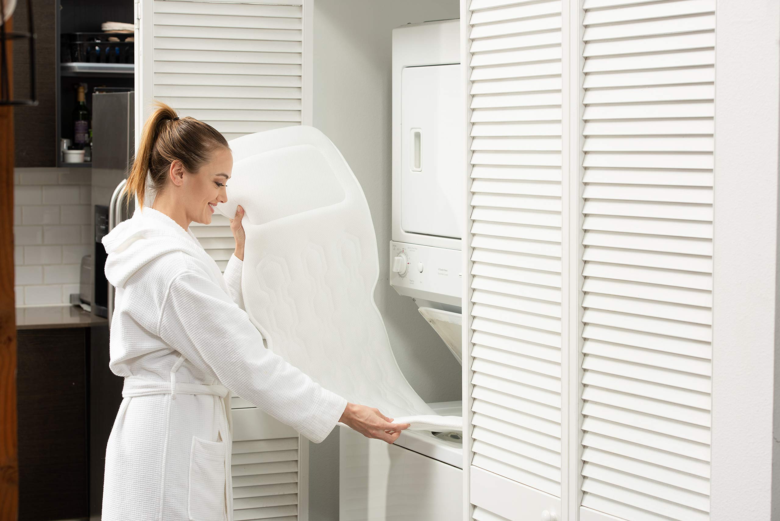 - EASY PRODUCT CARE & STORAGE - When handled with care this bathtub full body back cushion will last. Simply place pillow into the included mesh laundry bag before machine washing, hang to dry, then fold to fit into the free drawstring storage bag included with your order.