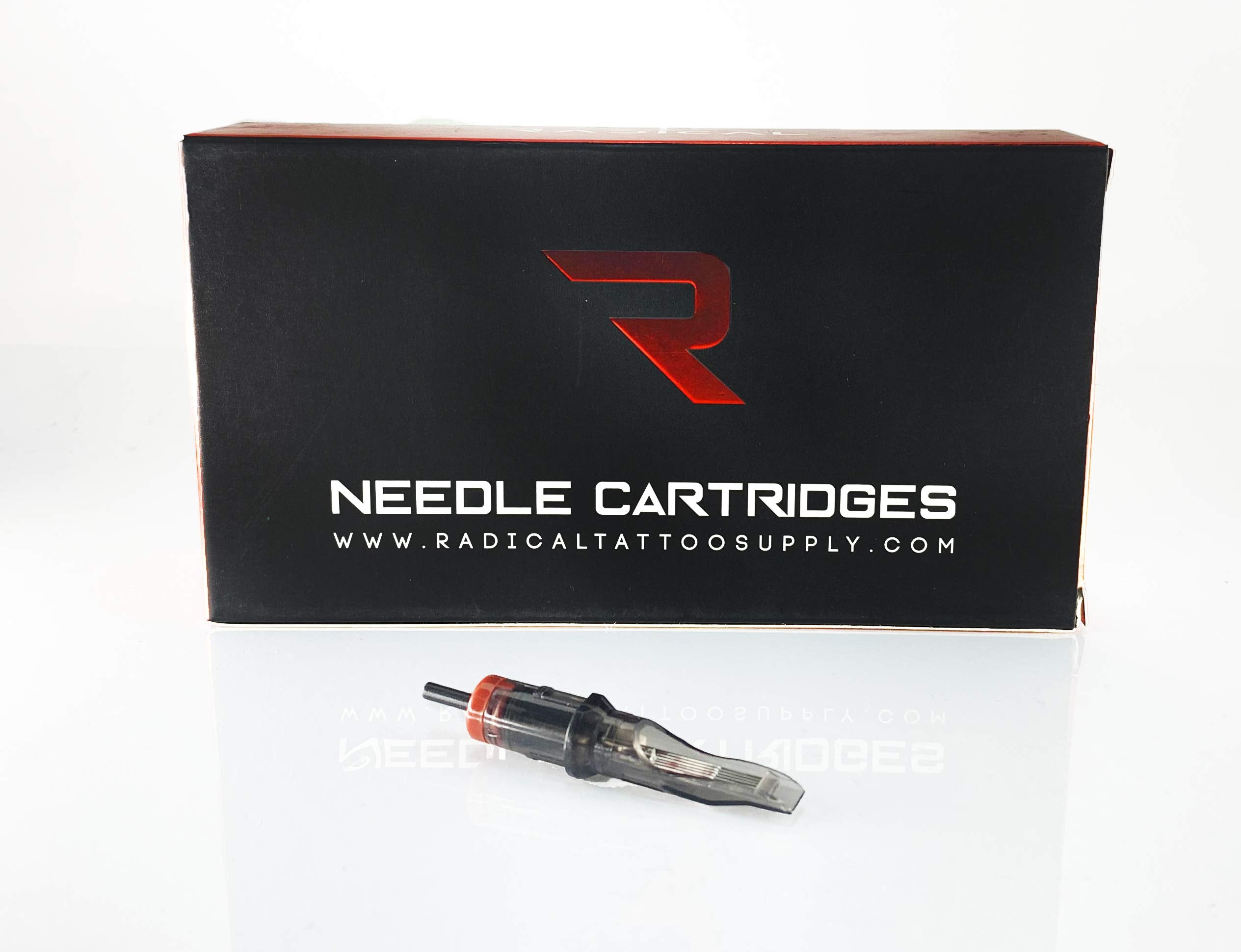 Product - Round Liner Needle Cartridges with Membrane Needle Size - Standard #12 Needle Gauge/Diameter Brand - Radical Sold In - Boxes of 20pcs Sterilized - EO Gas Sterile Compatibility - These cartridges are industry standard and will fit all machines and grips. These cartridges has a membrane to prevents ink spit back. The Radical Needles are made with high quality steel and high quality soldering. These cartridges has a precision clear grey tip for visual control & perfect ink flow. These needle go through strict quality control to make sure you get a great high quality tattoo needle.