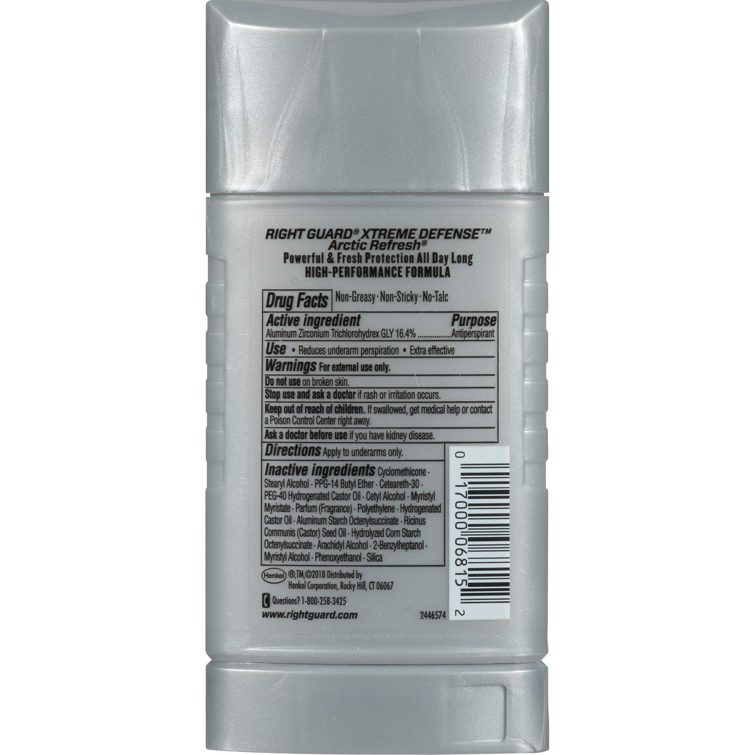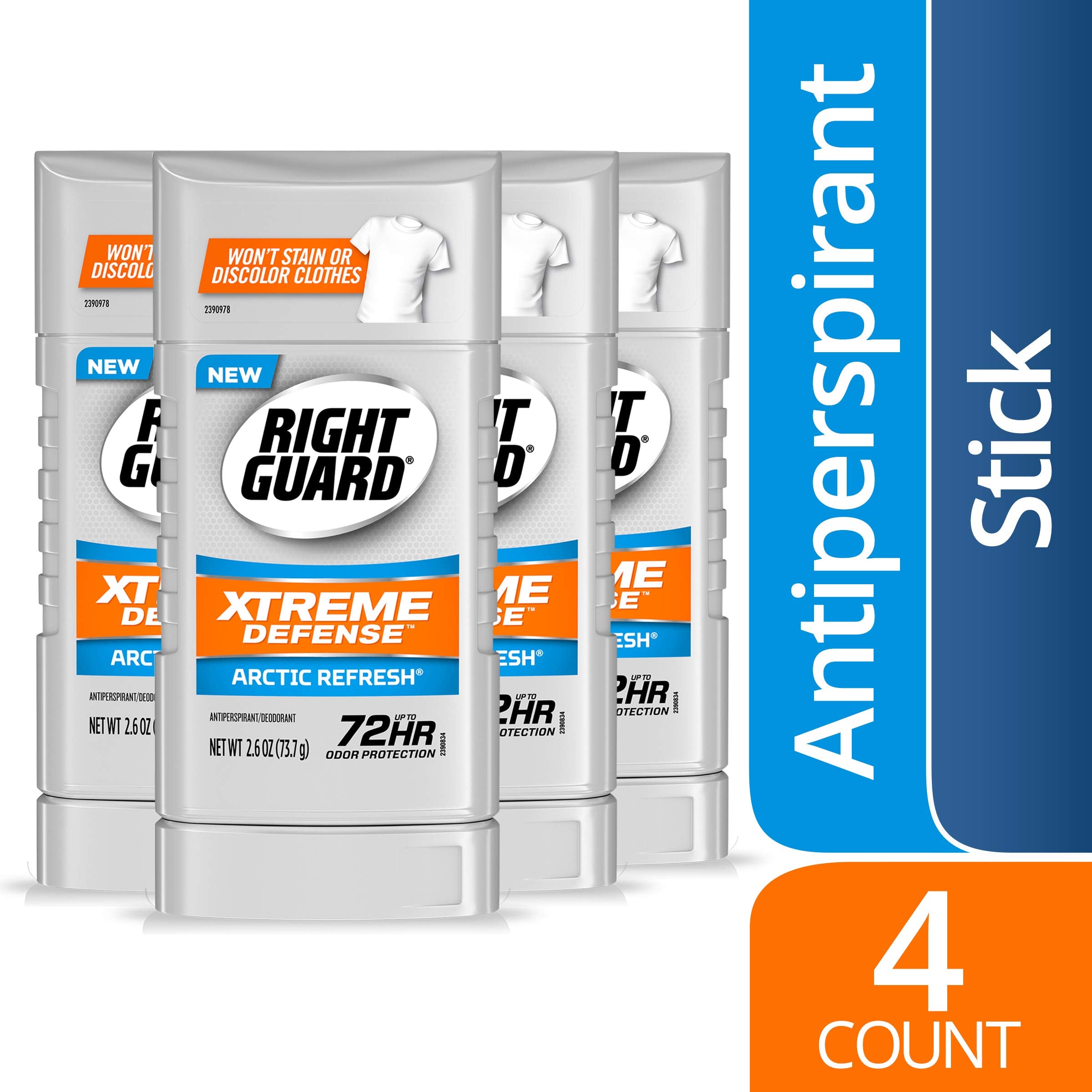 Right Guard Xtreme Defense Antiperspirant Deodorant Invisible Solid Stick, Arctic Refresh, 2.6 Ounce (Count of 4)