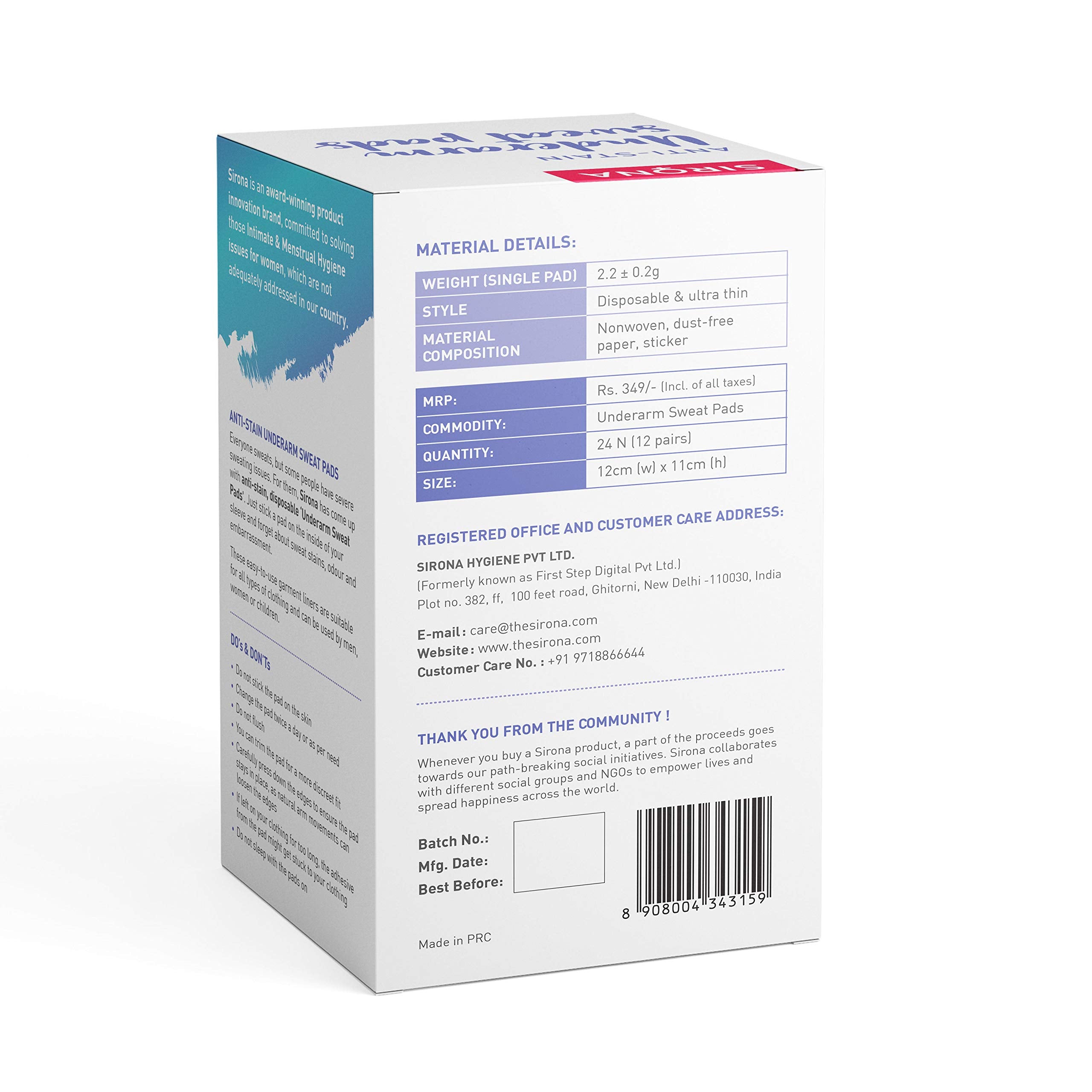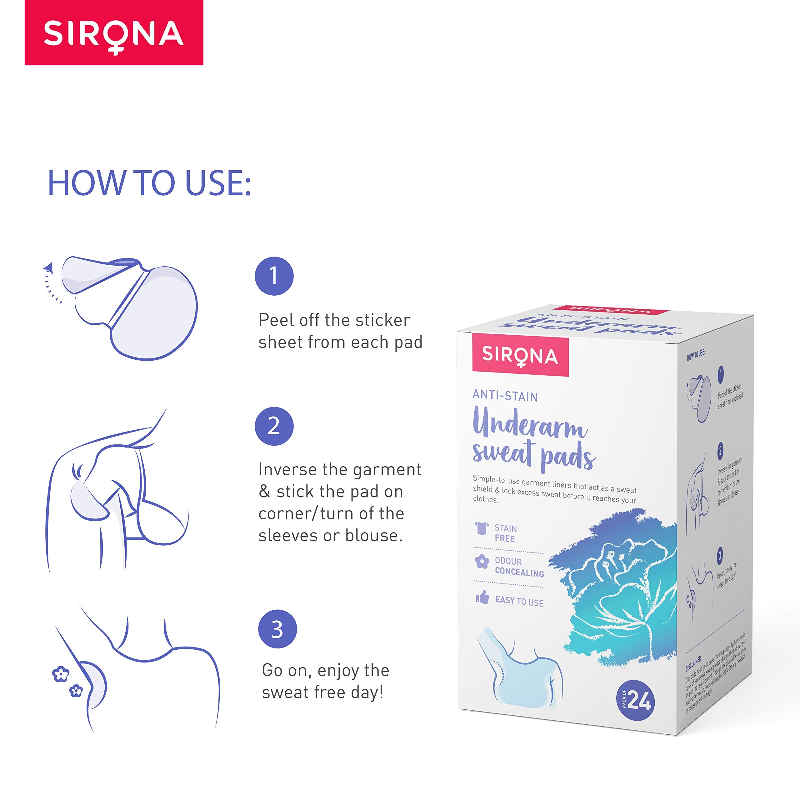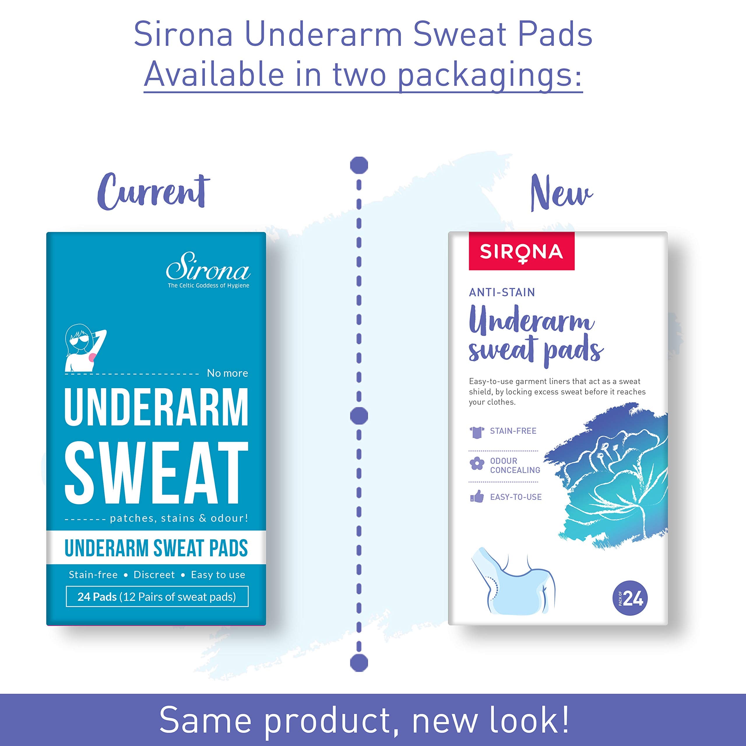 Sirona Disposable Underarm Sweat Pads - 24 Pads, Antiperspirant Absorbent Odour Blocker Pads Armpit Dress Shields, Fights Hyperhidrosis