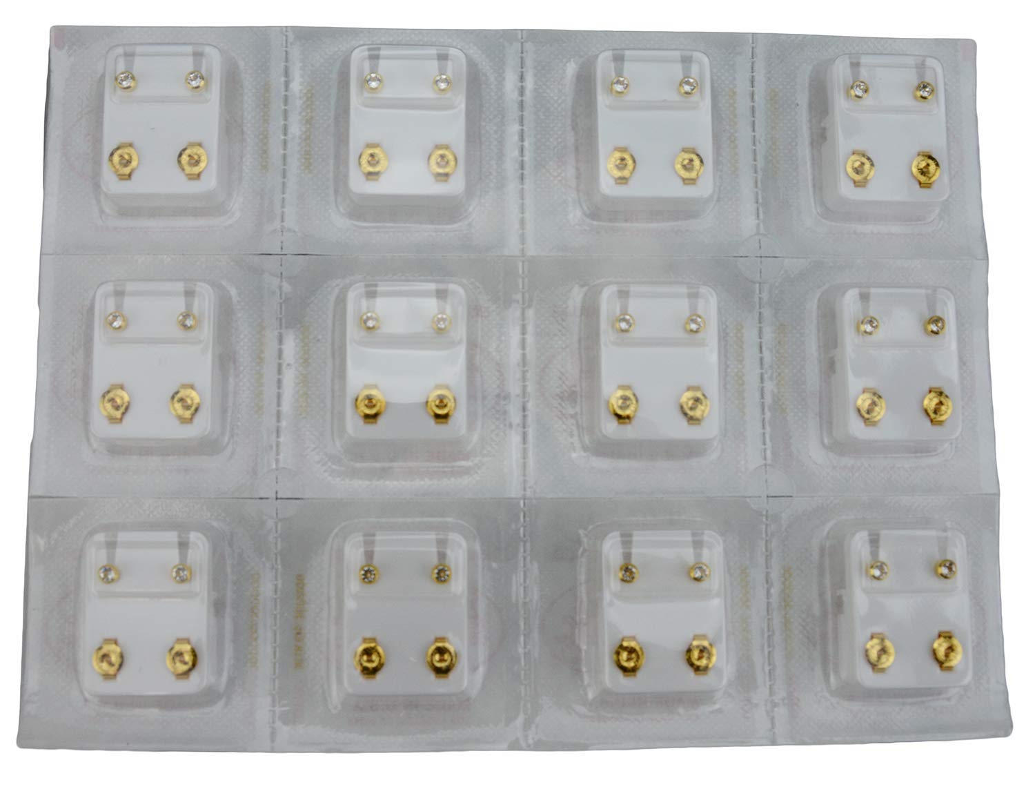 STUDEX ear studs are the best-selling ear piercing studs worldwide. This fact reinforces our determination to produce our ear studs with the highest possible precision and quality. Ear piercing studs are available in many styles. Studex Sterilized Surgical Steel Piercing 3MM Earrings/Studs in 12 Pair April Birth Month Set, 24K Yellow Gold Plated. 12 Pair 3MM Glass Foil Back Stones in a dozen pair April birth month set. Each stone is set in sterilized surgical steel All earrings exceed all F.D.A / E.C requirements. Earrings are sealed and sterilized in individual packages. Comes with Butterfly Earrings backs, are grooved friction post for secure fastening.