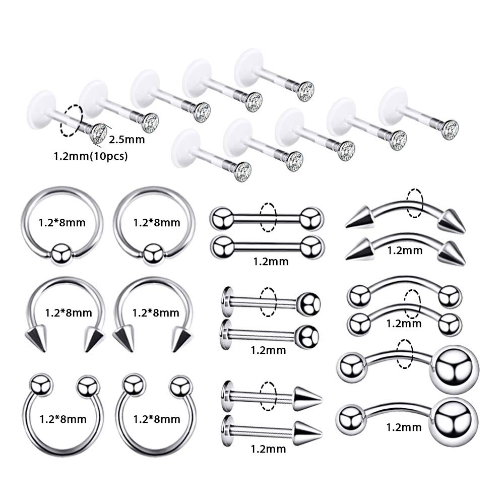 - 【MATERIAL】The piercing jewelry is made of high-quality 316L stainless steel, non-allergic acrylic material. Safe material, suitable for human skin. Mirror polished surface for comfortable wearing.