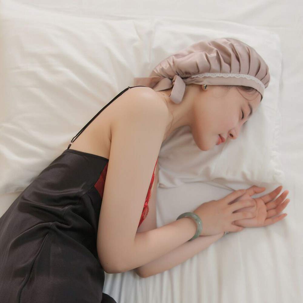 - Material:100% Pure Mulberry silk sleeping cap,Traceless natural silk very soft,Lace edge very beautiful