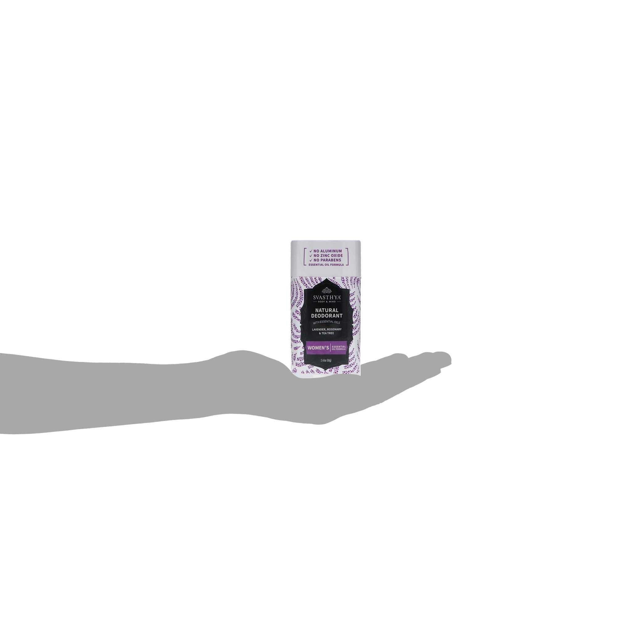 SVASTHYA BODY & MIND Natural Deodorant with Essential Oils - Womens - Gentle Skin Nourishing With A Refreshing Scent of Lavender, Rosemary & Tea Tree - Made In The USA, 2.45 oz