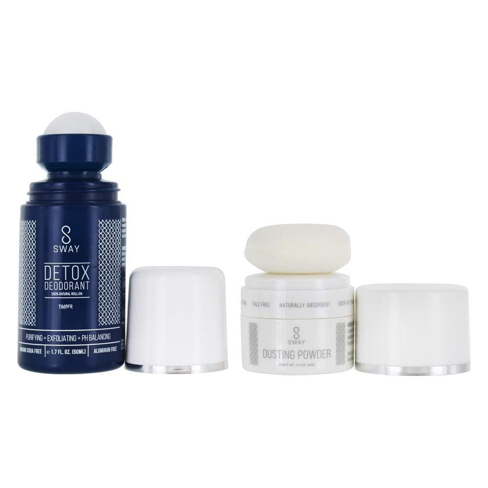 SWAY - Underarm Detox Deodorant for Sensitive Skin Kit : Roll On Deodorant + Baking Soda Free Dusting Powder | All Natural, Vegan, Balance pH | Aluminum Free, Long-Lasting (Timber) by SWAY Store