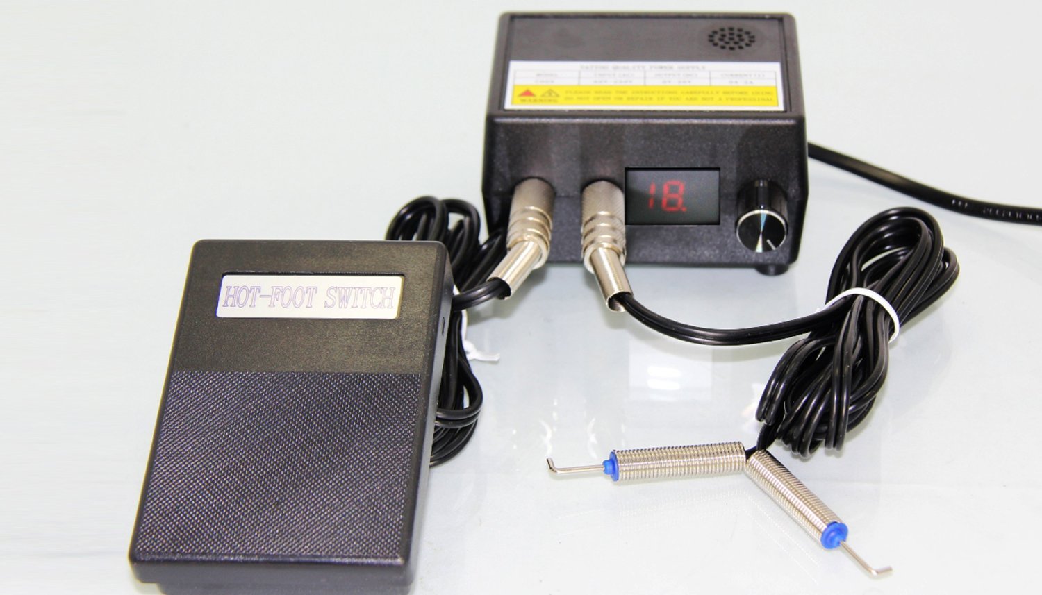 1 UL FCC Listed power supply 110V~220V AC input, 2V~20V DC output adjustble, Dimension Apprx. 7.4"X6"X3.5" 1 power cord 3 Feet 1 power clip cords (45 copper threads strand in silicone insulation) 6 Feet 1 foot pedal power switch 6 Feet long cord Brand: ordertattoo.com This is a brand new...