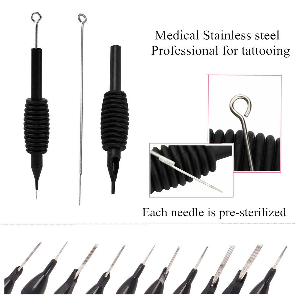 - HIGH QUALITY - Made of high-quality material, it is durable: Tattoo Needles:304 Stainless Steel. Tattoo Tubes: Plastic. Tattoo Grip: Gel. Each tattoo needle comes with one suited tattoo grip tube & tip.