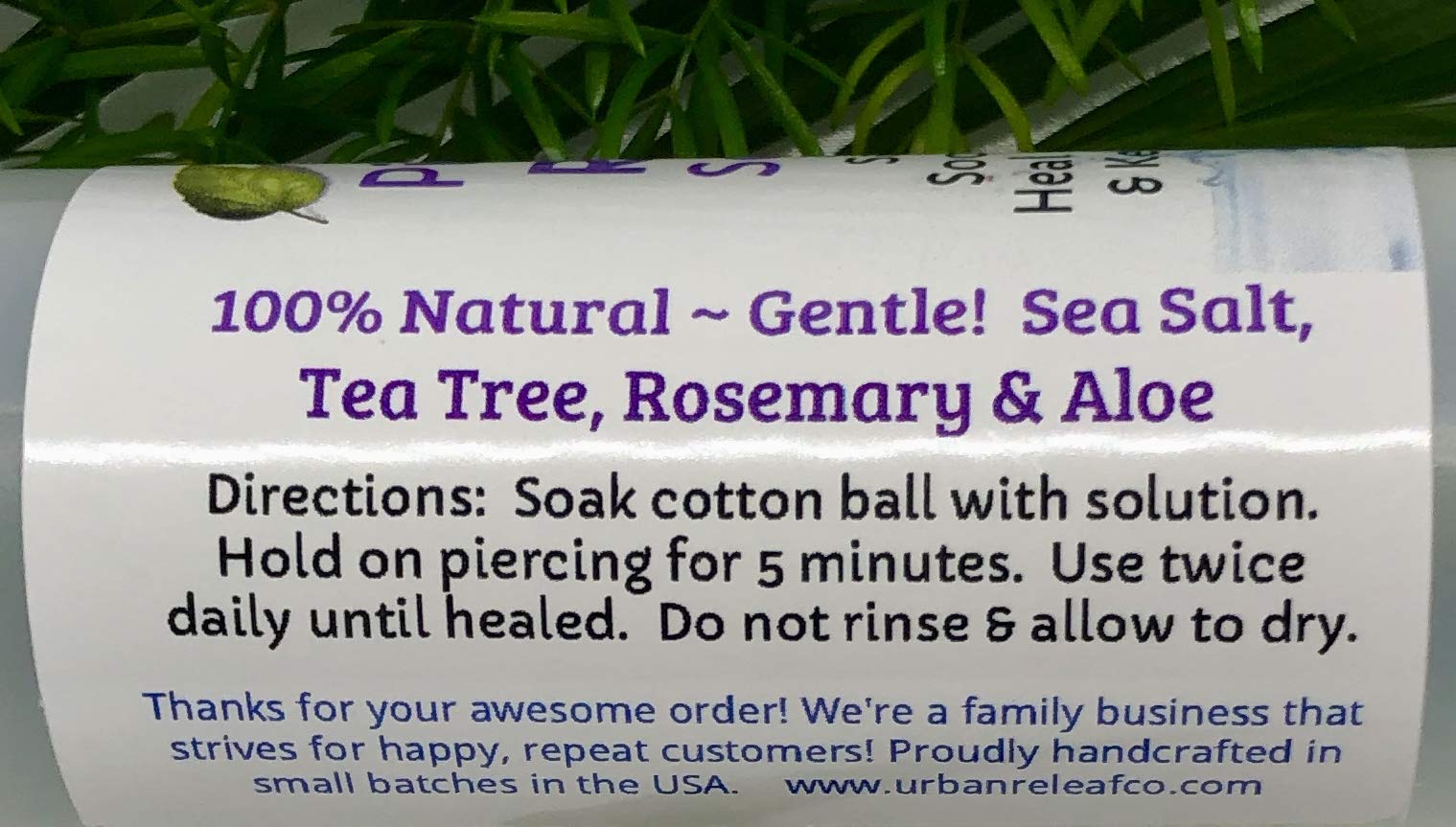 Urban ReLeaf Piercing Relief Solution ! Safely Clean, Soothe & Gently Heal New, Irritated and Keloid Piercings. 100% Natural Sea Salt, Tea Tree, Rosemary