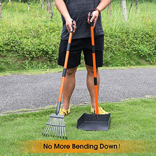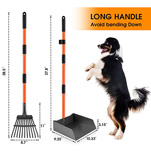 - Easy to Clean & Rust Proof: The tray and rake are treated with non-stick coating, so it can easily be rinsed clean with a spray from the garden hose after use, the metal and aluminum build makes the dog poop scoop rust resistant, no need to worry about rusting and corrosion.