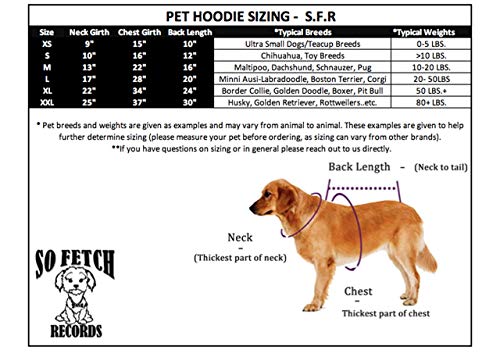 Details: -So Fetch Records - Hand Made to Order 65% cotton 35% polyester Hand Wash and Hang Dry - Please measure carefully and choose size based on charts in photos Medium hoodie: neck girth is 13 inch, chest girth is 22 inch, body length is 16 inch, suitable for Beagle, Boston Terrier, Maltipoo..etc Thick material, great for cold weather