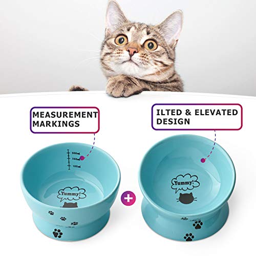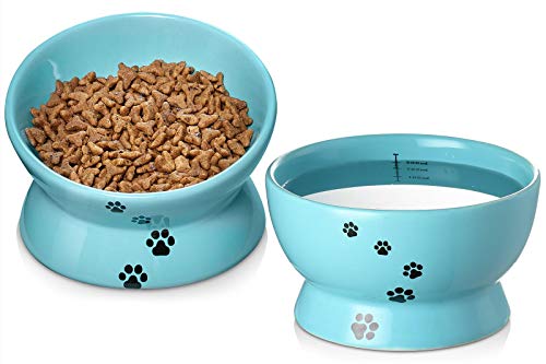 Brand: Y YHYColor: BlueFeatures: Full Dinner Set - Plenty of room(15 oz& 5 oz), large capacity works as a full dinner set with food and water for one. Your pet will definitely love this versatile and decorative ceramic cat bowl Reduce Neck Burden: The elevated cat food and water bowl(3.6 inches...