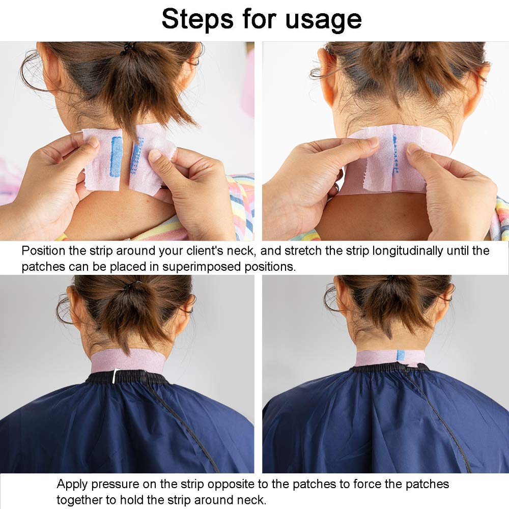 - ✂ How to use: tear a piece of neck strip from the paper roll, gently stretch it to fit the customer's neck, and then stick the white spots on both ends together (Note: the neck band can be stretched, but not in a savage way). It's right to stick the white dots on both ends together. It won't stick anywhere else.)