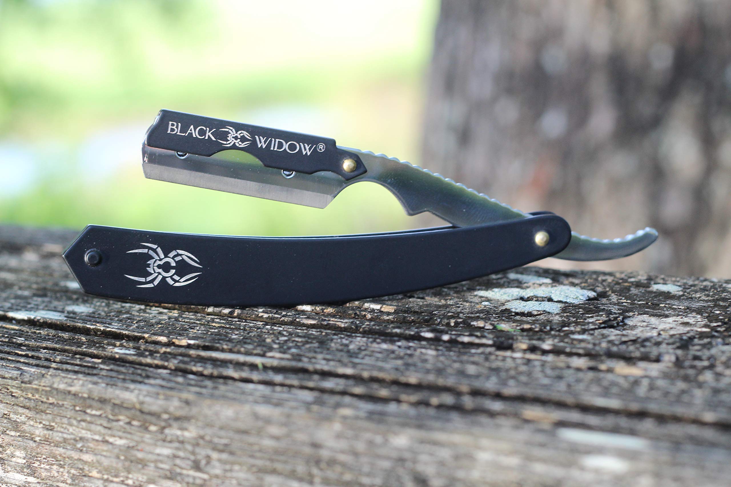 • 100% RUST-RESISTANT STAINLESS STEEL - Black Widow straight safety razor is well-constructed with stainless steel, which is stiffer and better for thick beard or hair. Already set for an exposed blade for crisp cut lines. You don’t only get a good shave but also a good value for money