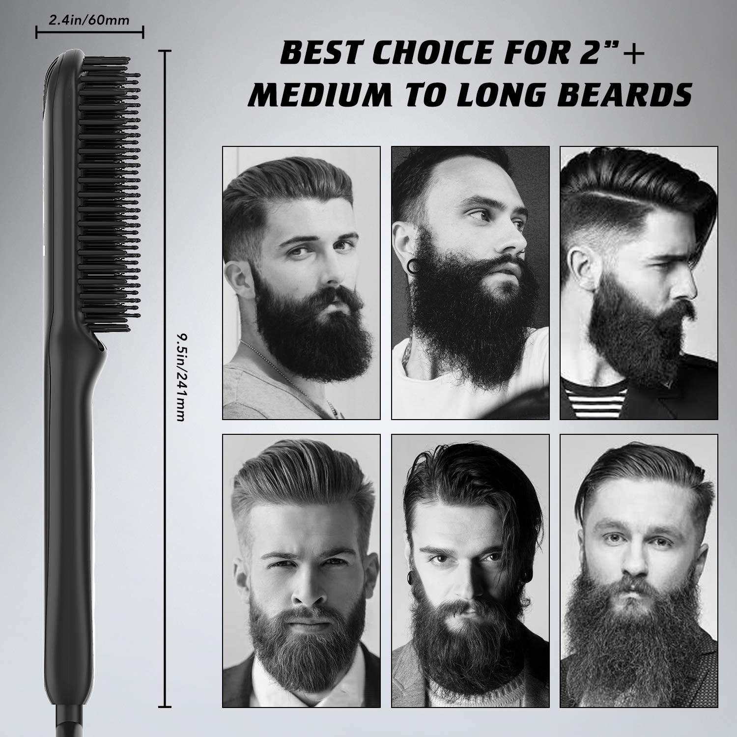 - Tame Your Beard in A Flash: The beard straightener brush adopts innovative MCH technology that has even heat distribution and fast heating response time, tested vigorously in every beard straightening brush that ensures smoother strokes, even heat distribution, and faster heating/cooling. Heats up in 30 seconds and allows you to save a significant amount of time grooming and perfecting your beard with a single brush stroke.
