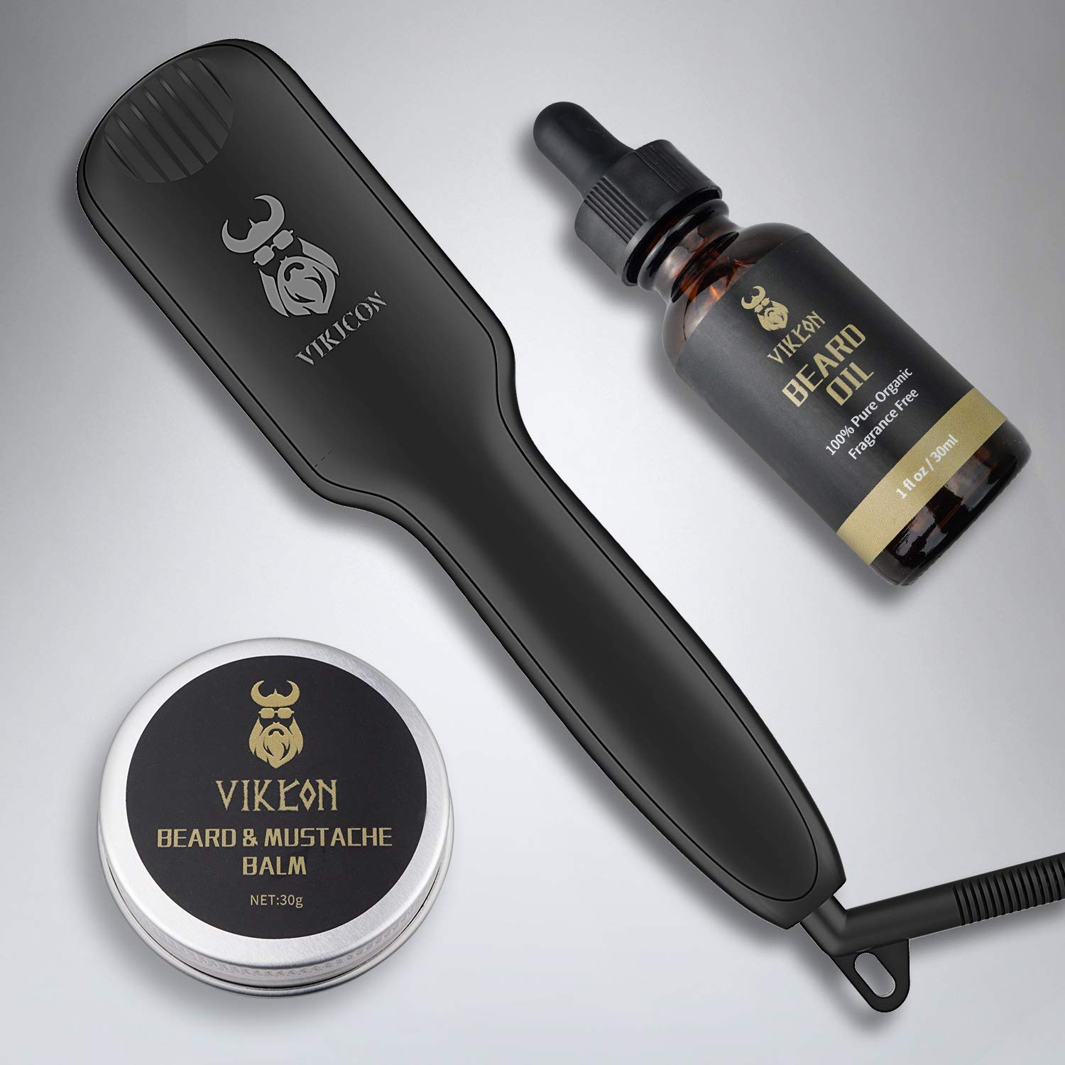 - Best Value with FREE Beard Oil and Balm: VIKICON Viking Kit Ⅱ comes with a ionic beard straightener for men, 1 floz pure organic beard oil which makes your beard shining and silky soft, more fuller and tamer, premium all-natural beard balm which help to keep your beard styled to perfection and tame fly-aways. Just to achieve the best result at the best price, all in a giftable box, designed for beard grooming based on the Viking Culture, keeping unique and elegant appearance all along.