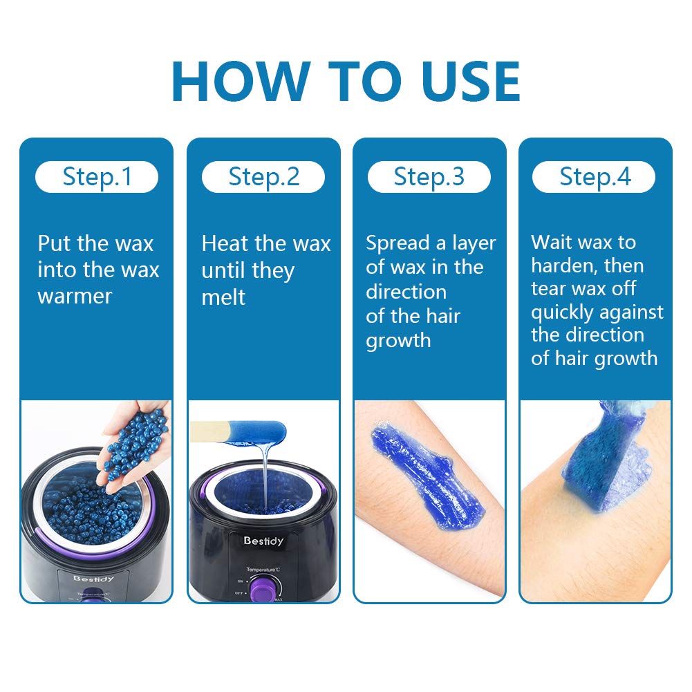 • 【Time and Money Saving】 Enjoy no strips, less painful hair removal at home. In a few minutes bring you smooth and hairless skin. No more going to expensive wax salons with Bestidy wax